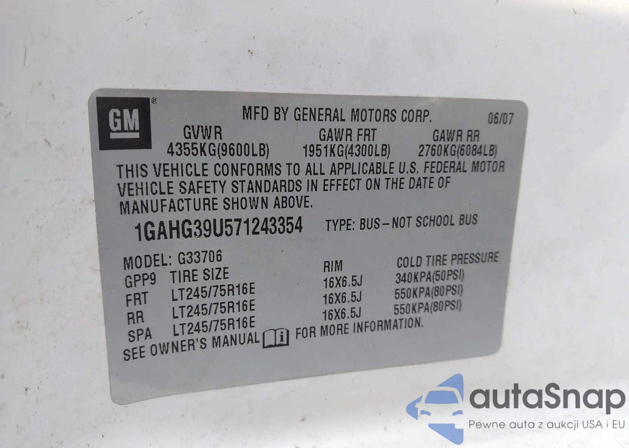 • VIN: 1GAHG39U571243354