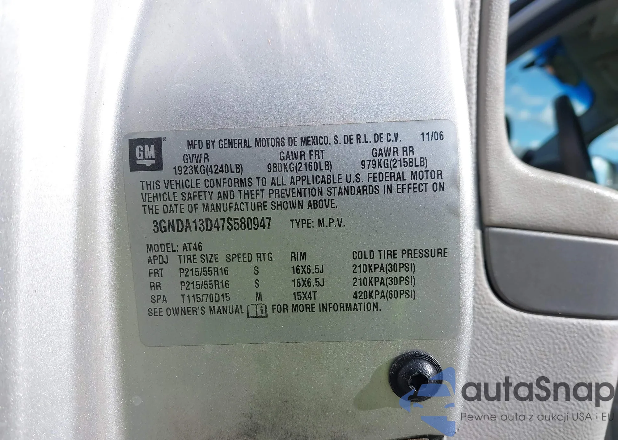 The car Chevrolet HHR 2007 (VIN 3GNDA13D47S580947) is sold by an unverified seller. We recommend checking the Carfax report and confirming registration possibilities before purchase.