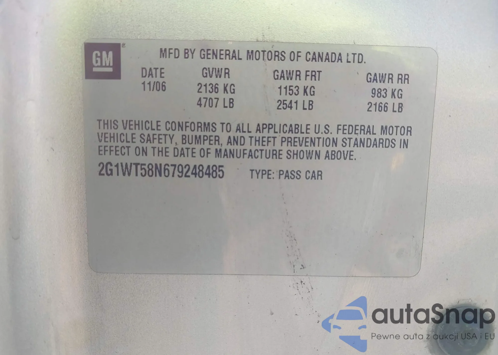 VIN: 2G1WT58N679248485