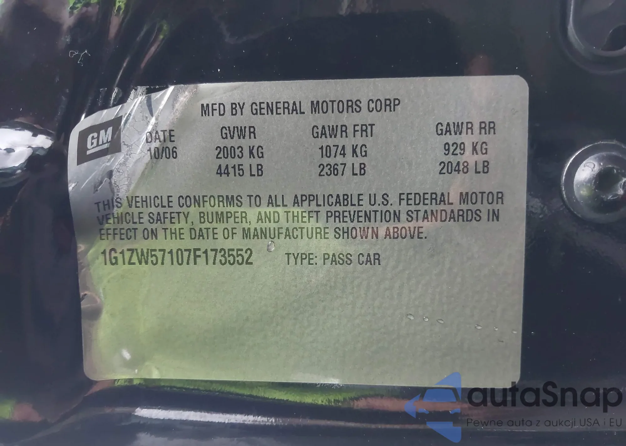 • VIN: 1G1ZW57107F173552