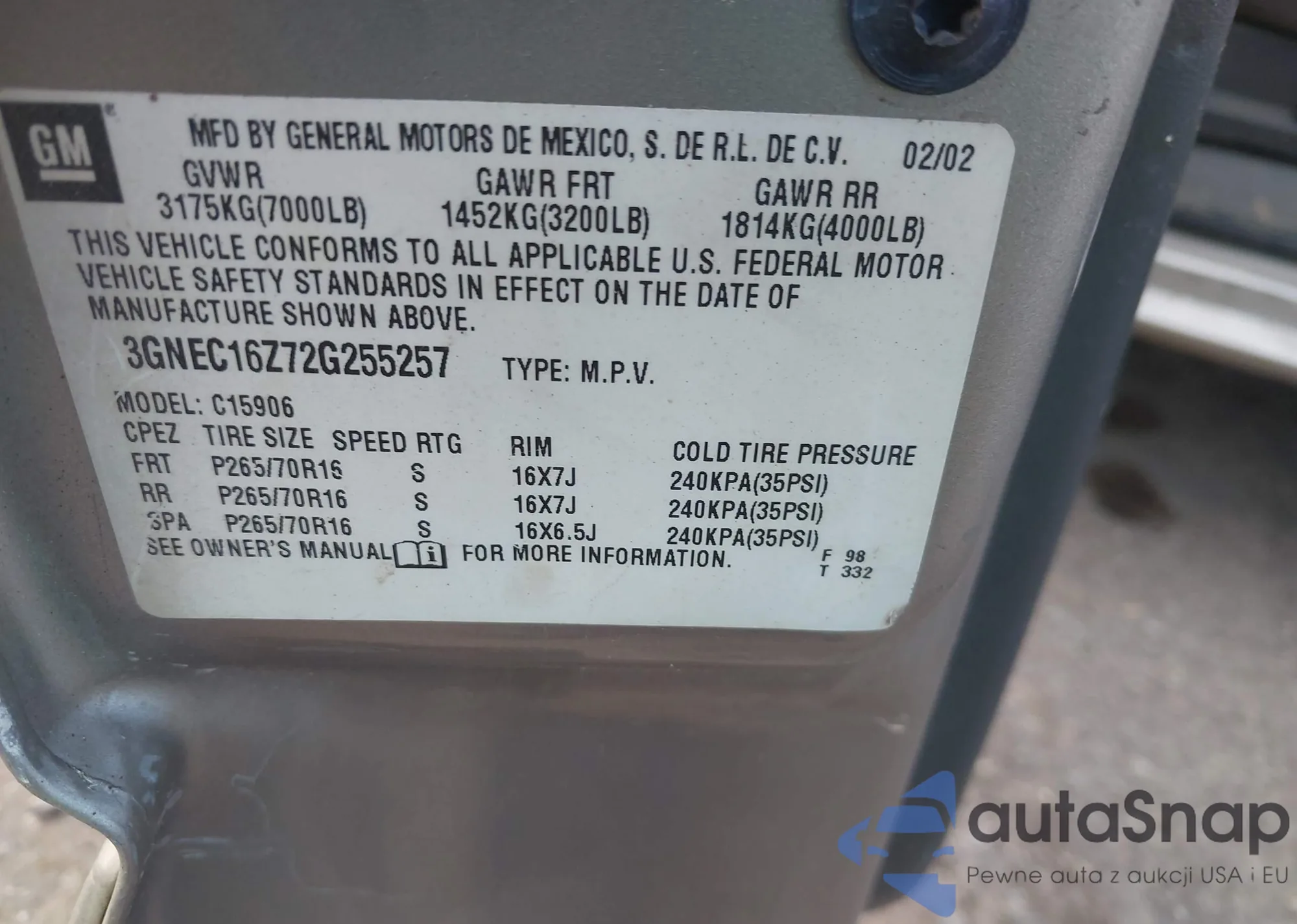• VIN: 2GCEC13V371158650