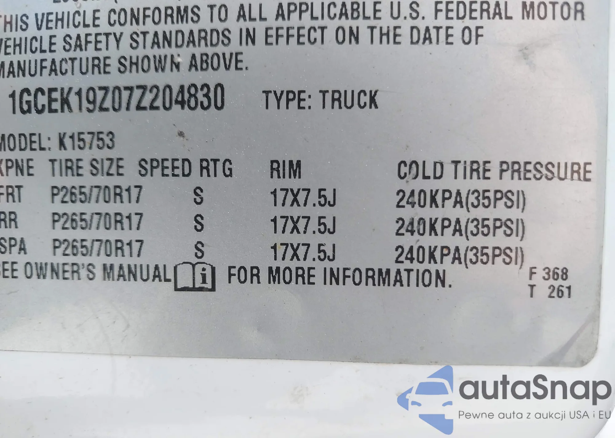 VIN: 1GCEK19Z07Z204830