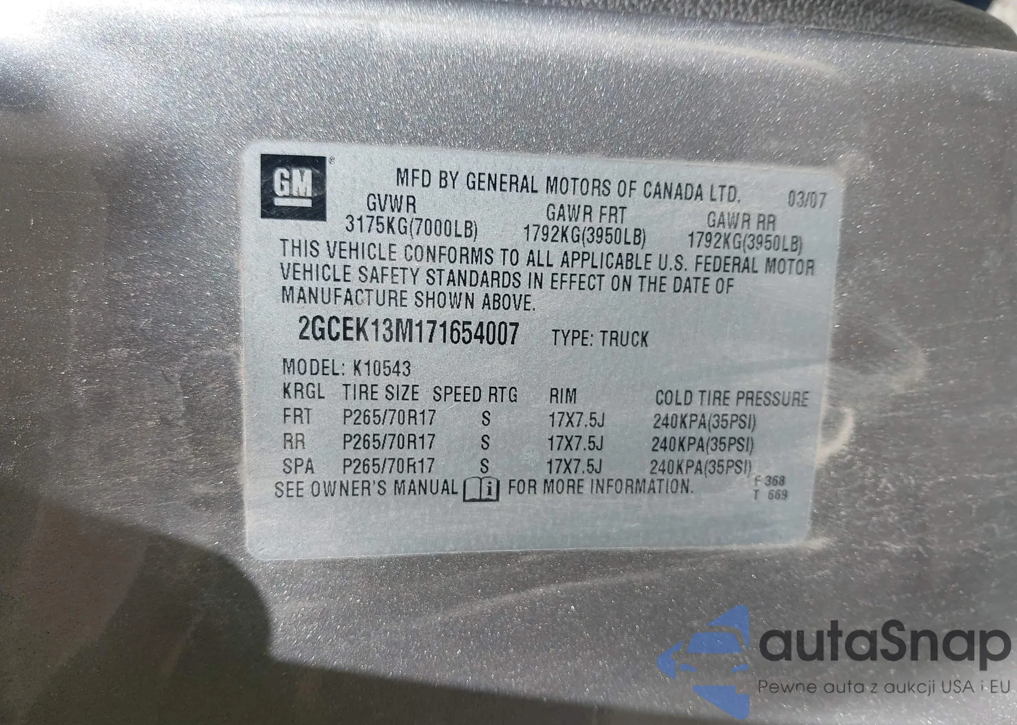 VIN: 2GCEK13M171654007