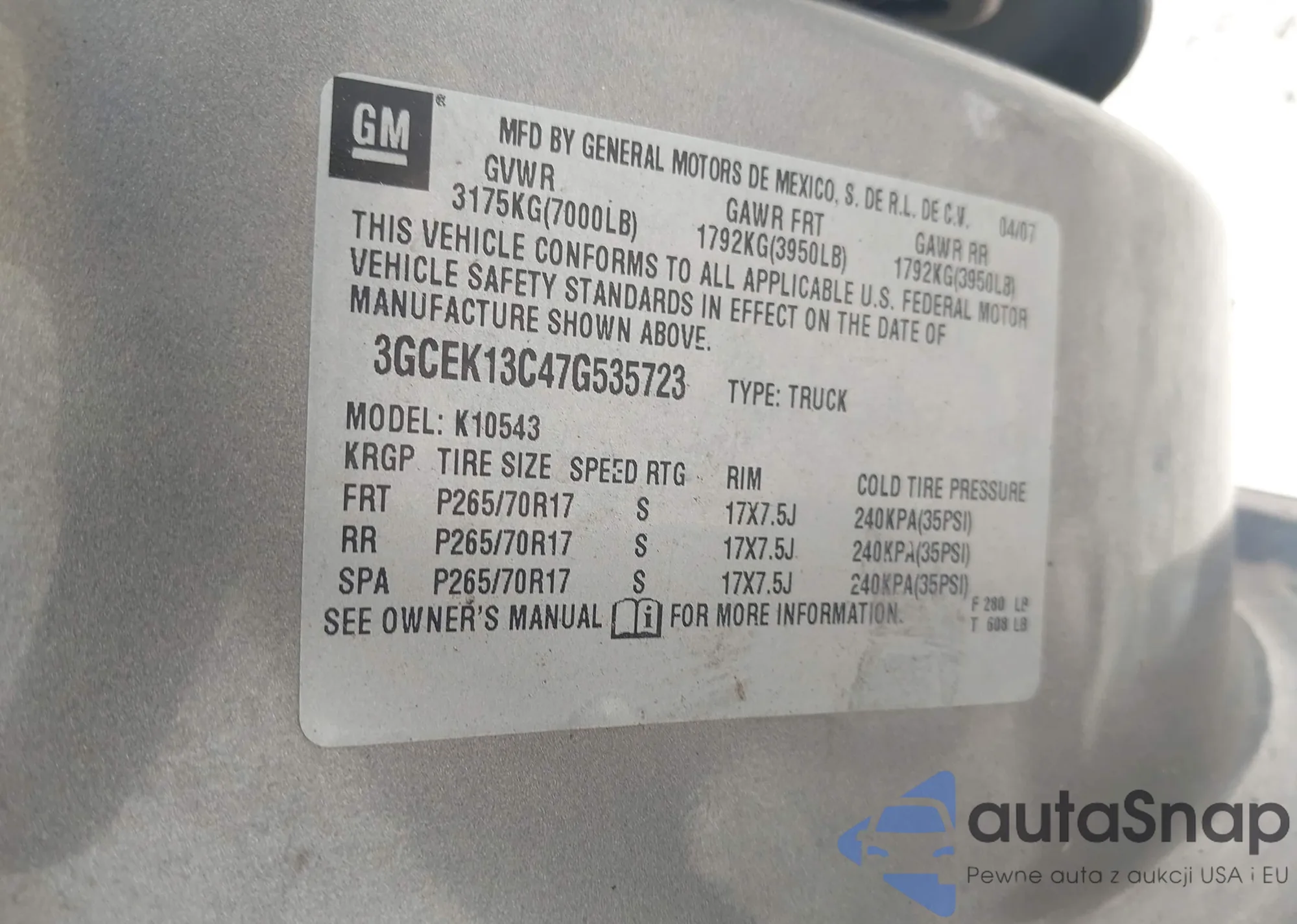 VIN: 3GCEK13C47G535723