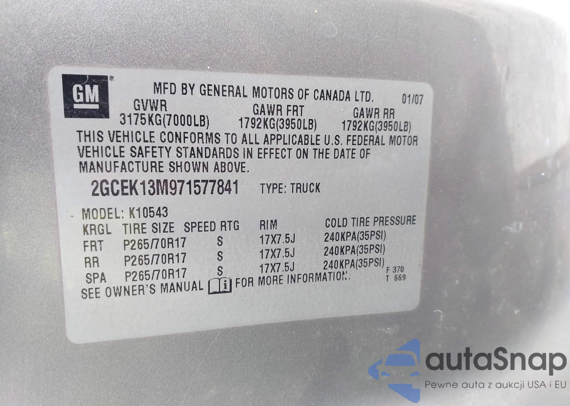 VIN: 2GCEK13M971577841