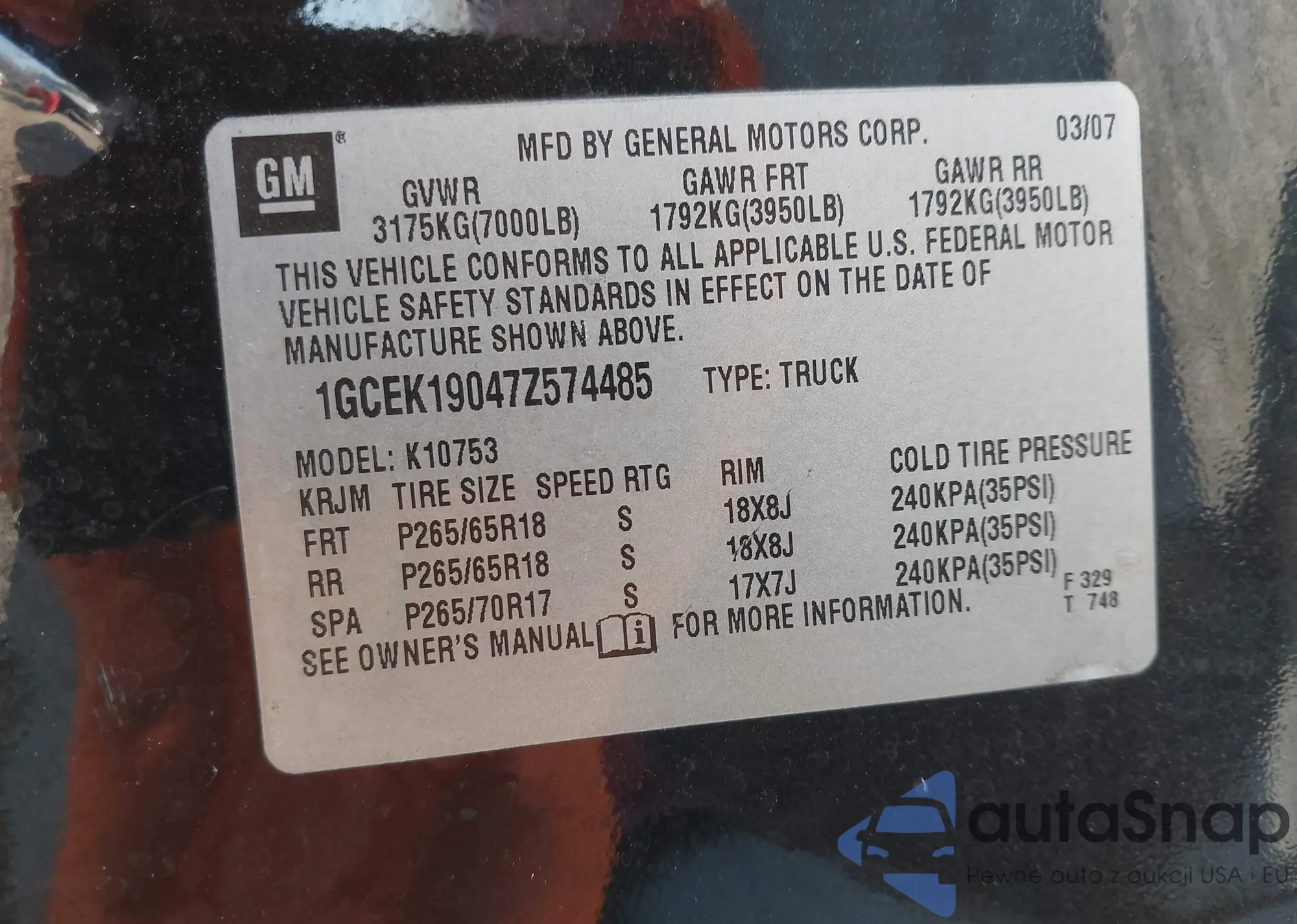 The car Chevrolet Silverado 2007 (VIN 1GCEK19047Z574485) has not been auctioned before. The documents are clean, and the mileage matches or is below the market average. Sold by an insurance company – we recommend purchase. Delivery to the port will take approx. 6–8 weeks.