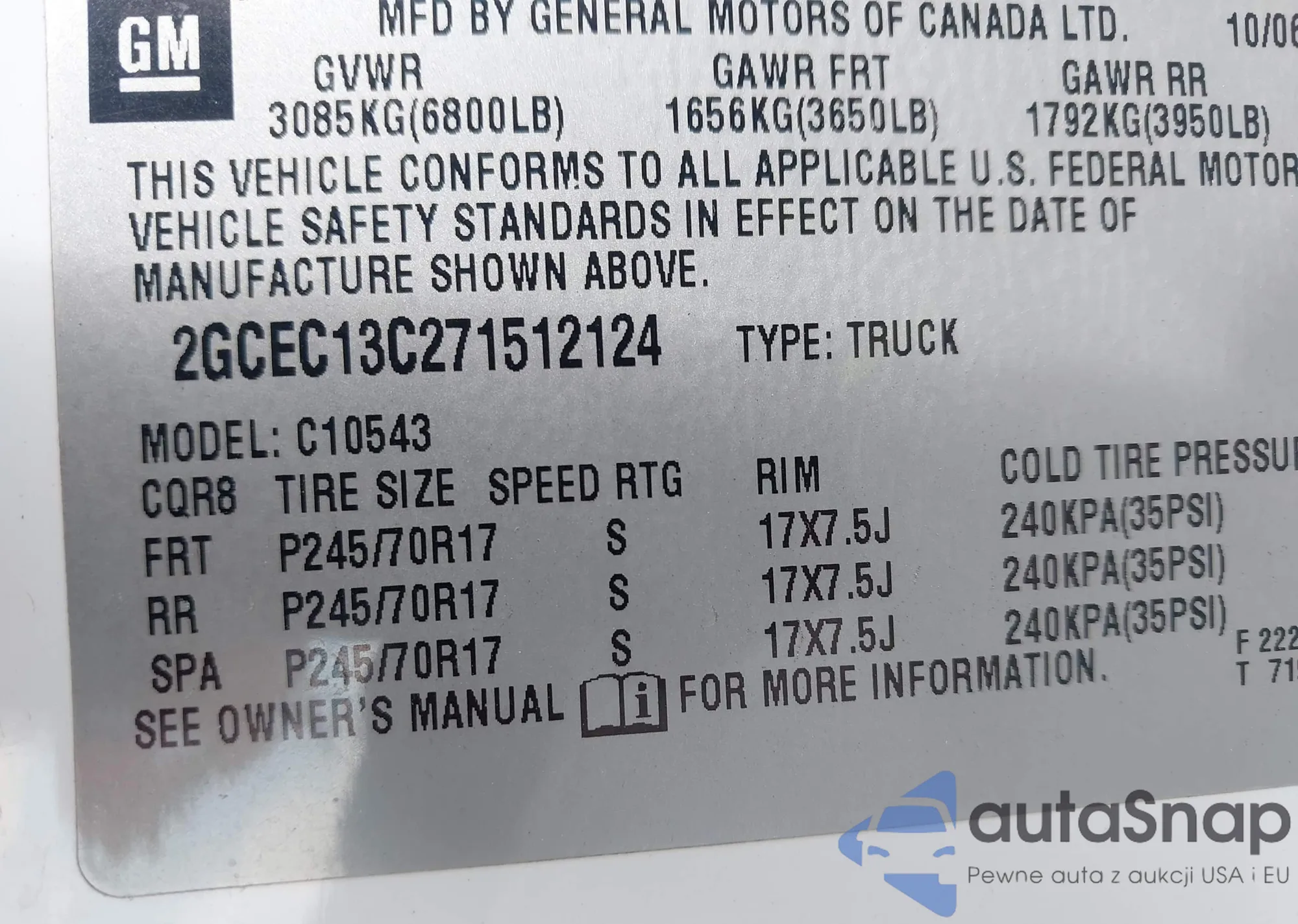 • VIN: 2GCEC13C271512124