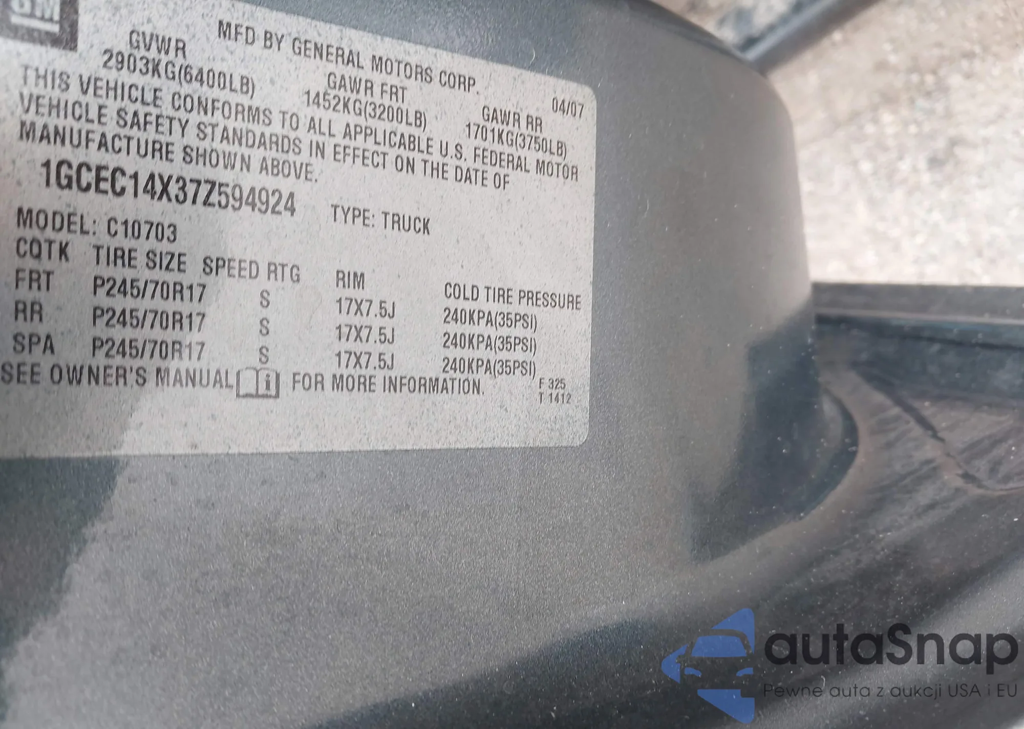 • VIN: 1GCEC14X37Z594924