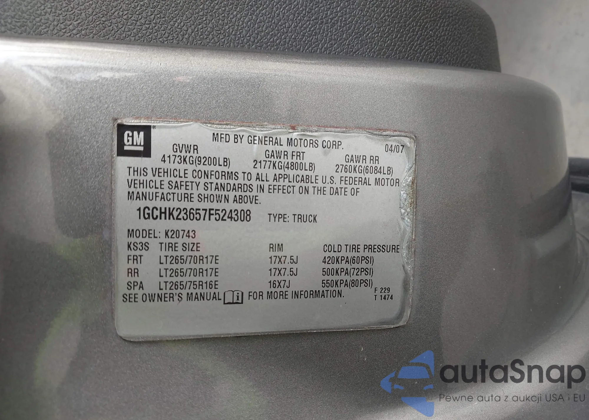 • VIN: 1GCHK23657F524308