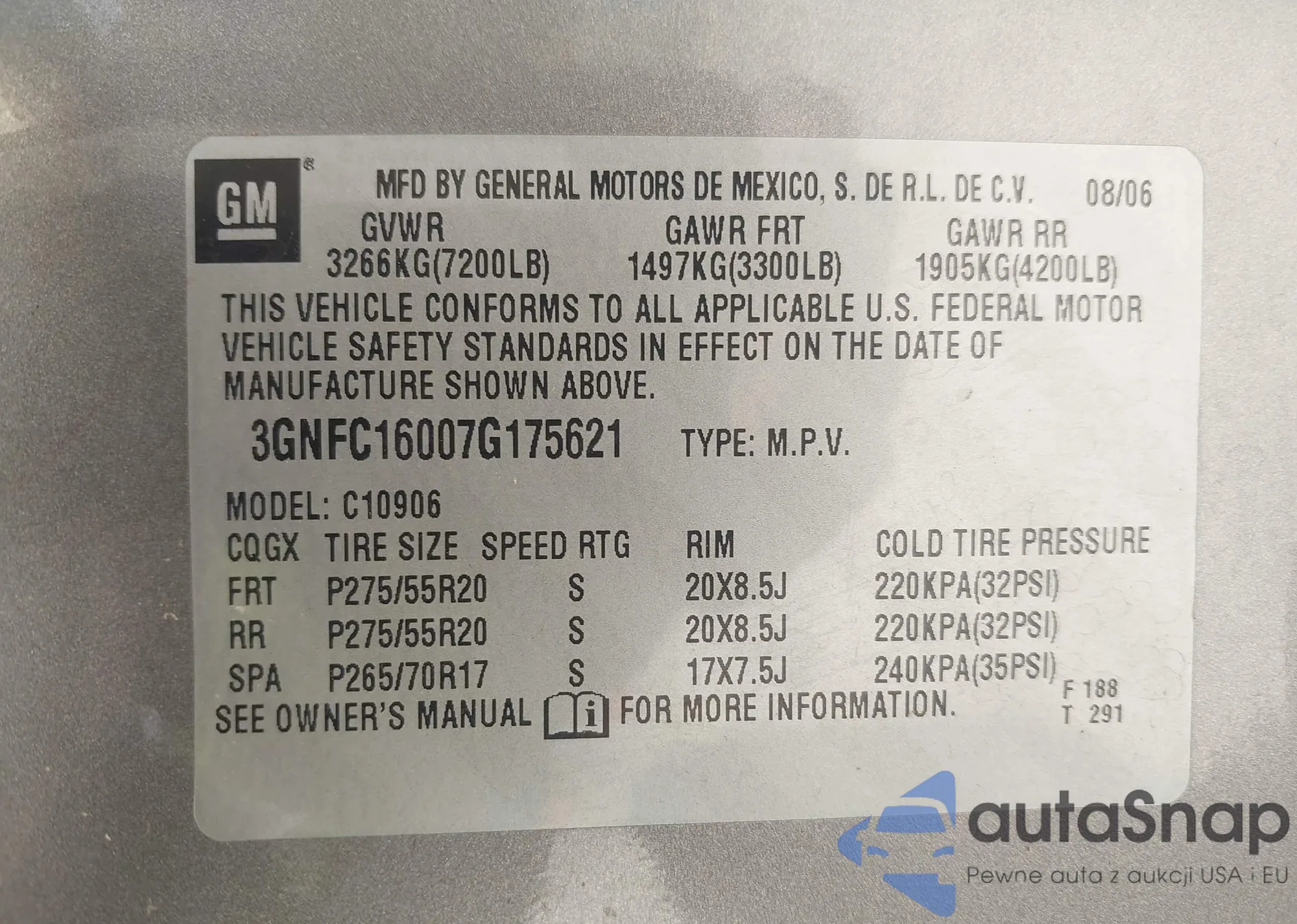 VIN: 3GNFC16007G175621