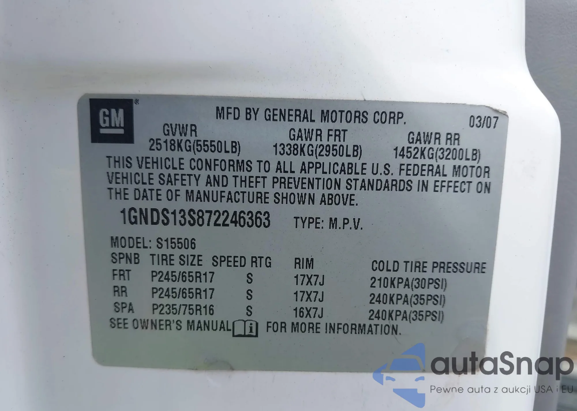 VIN: 1GNDS13S872246363