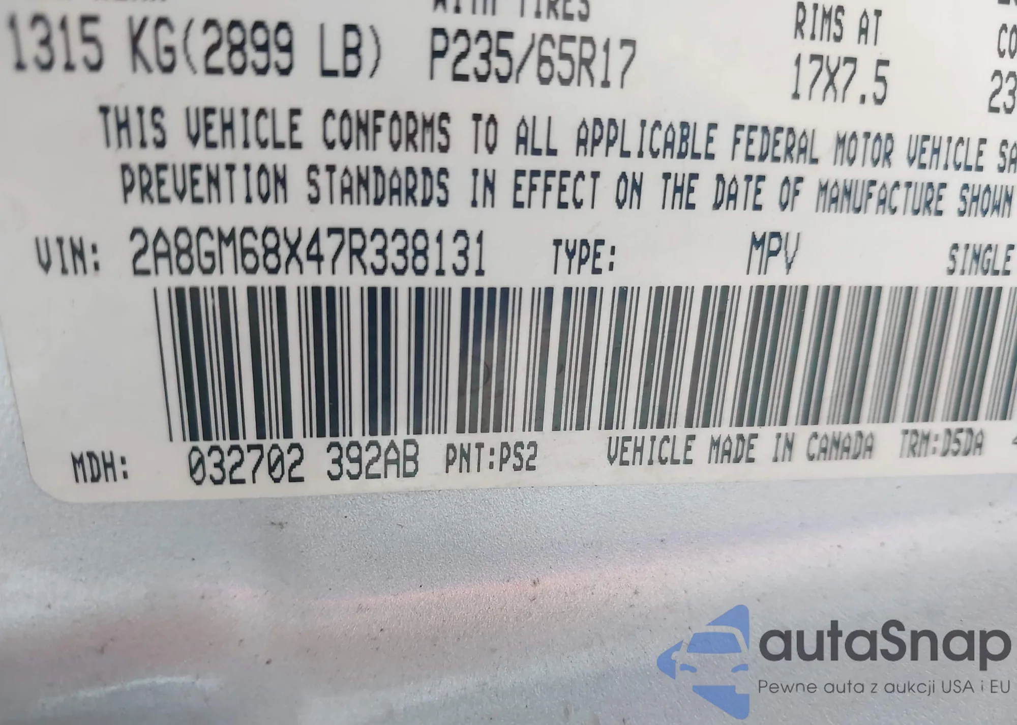 VIN: 2A8GM68X47R338131