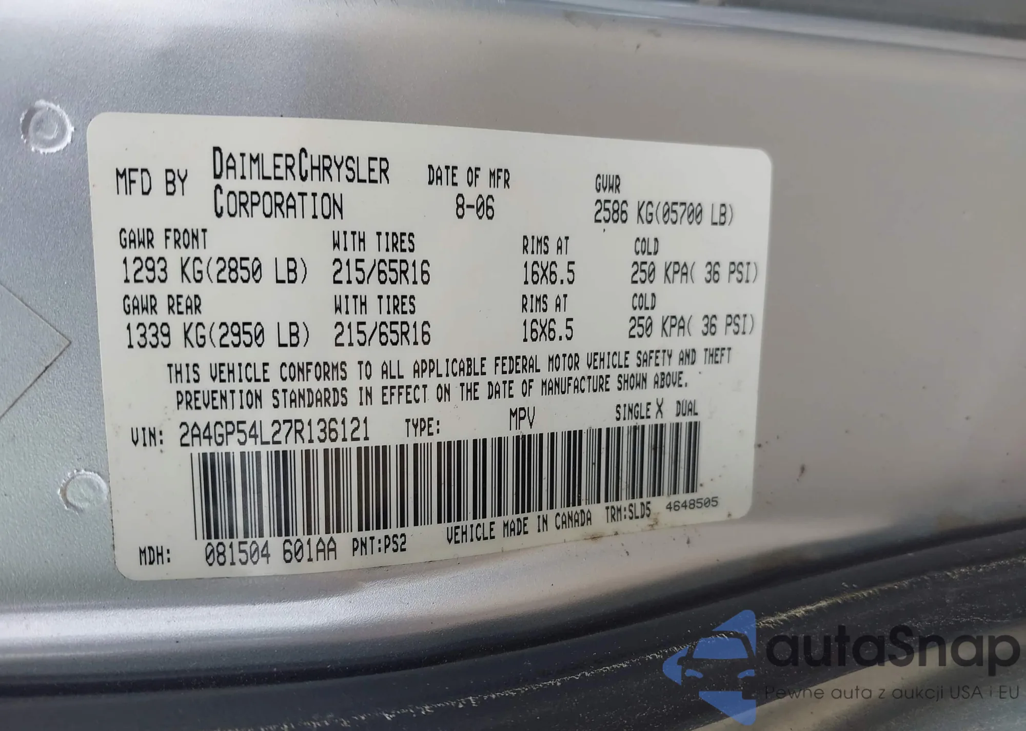 VIN: 2A4GP54L27R136121
