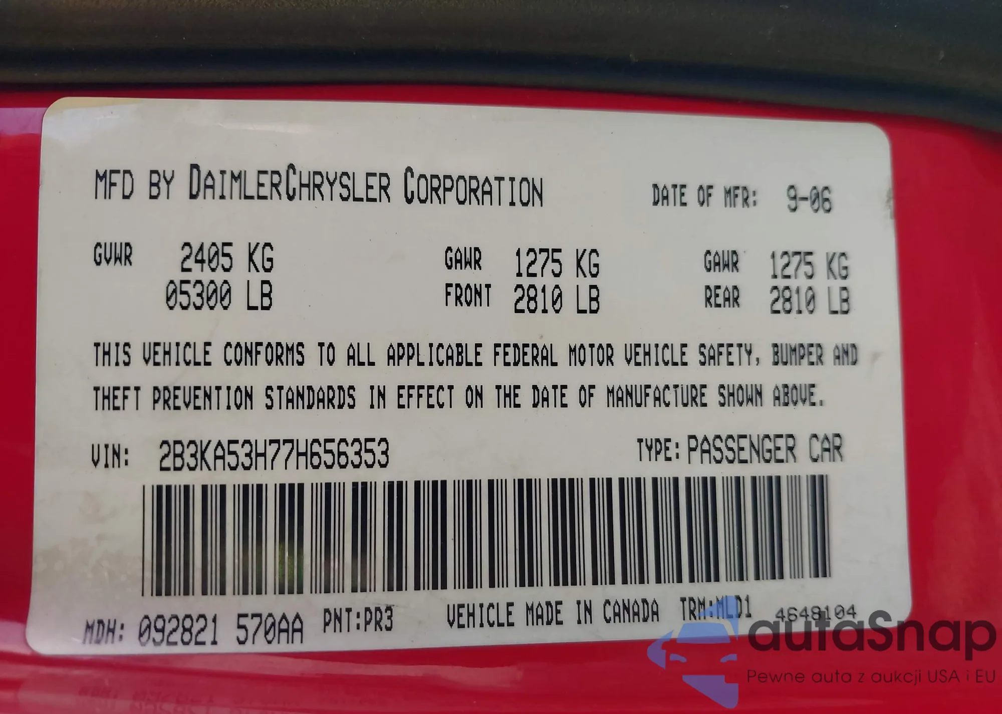 • VIN: 2B3KA53H77H656353
