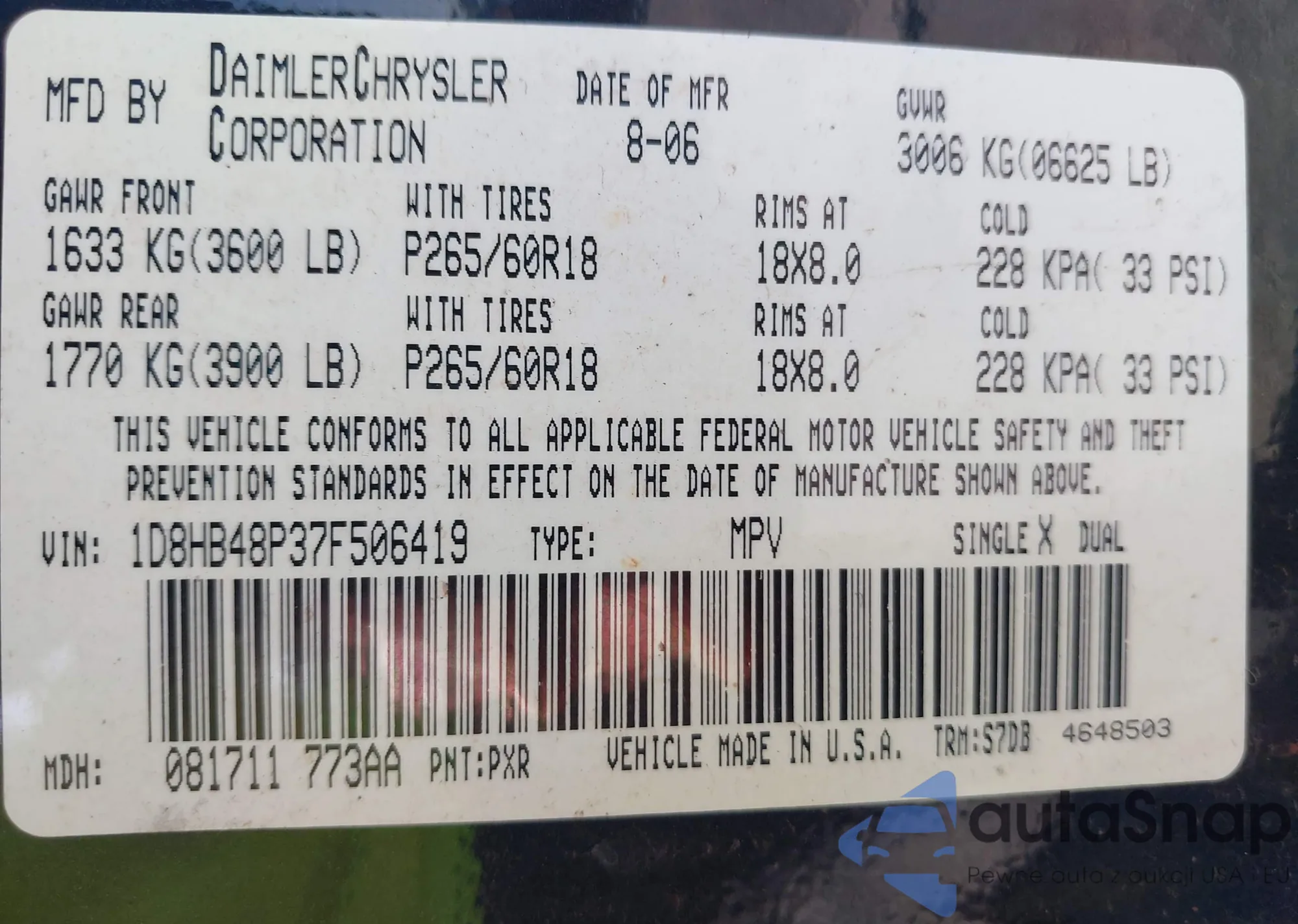 VIN: 1D8HB48P37F506419