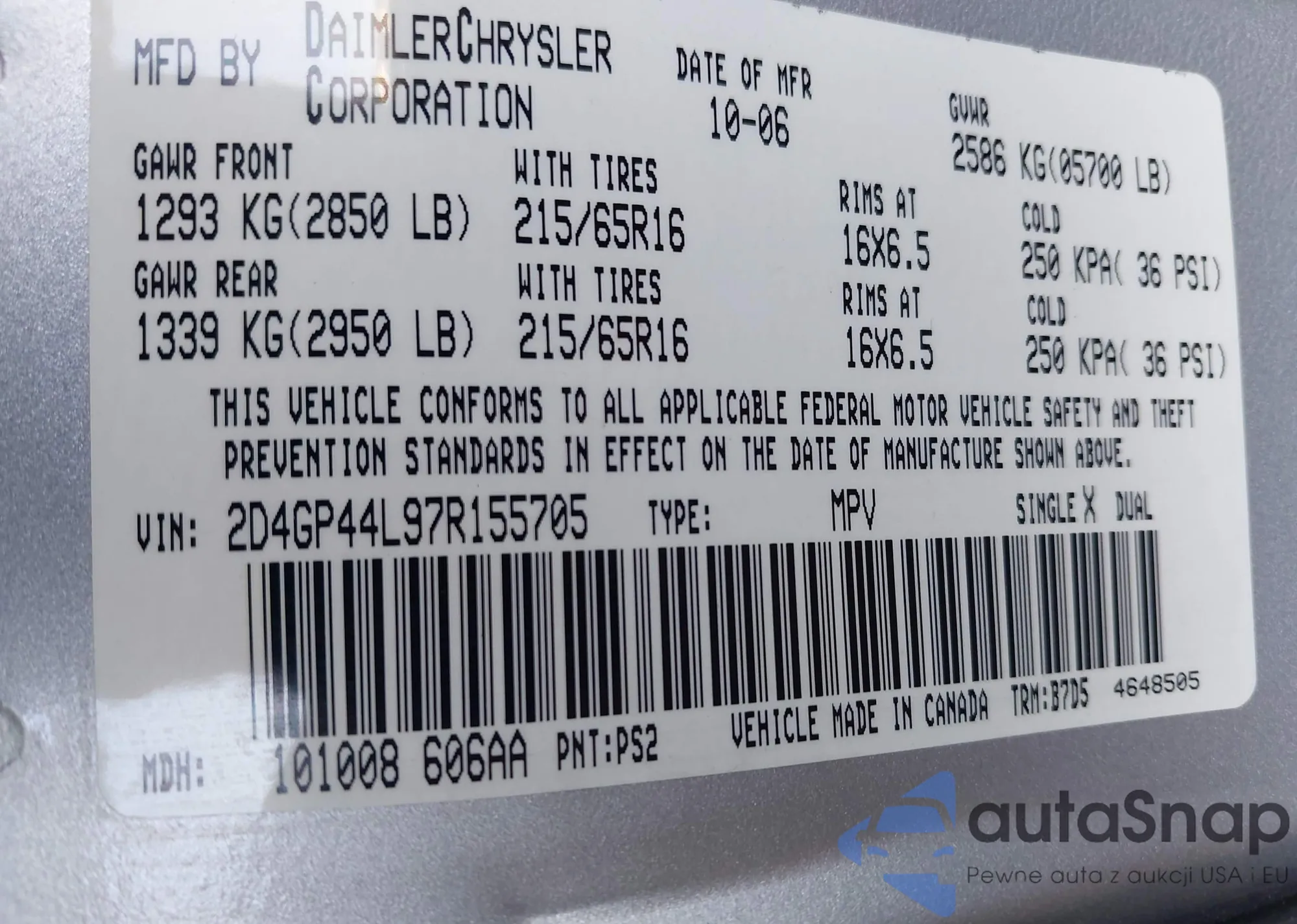 • VIN: 2D4GP44L97R155705