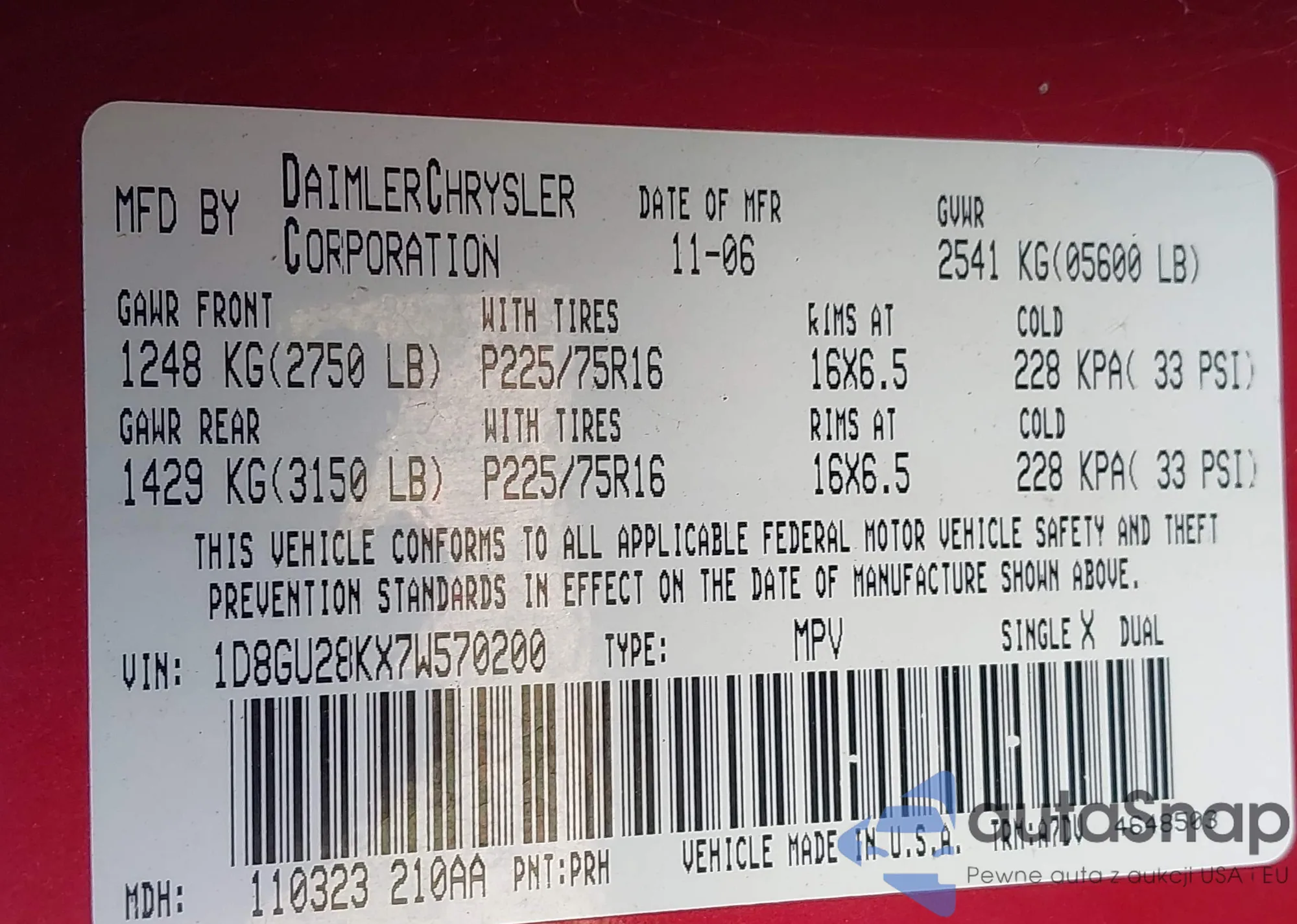 VIN: 1D8GU28KX7W570200