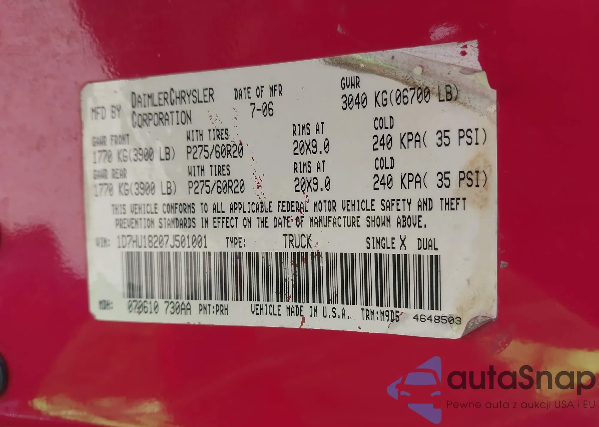 VIN: 1D7HU18207J501001