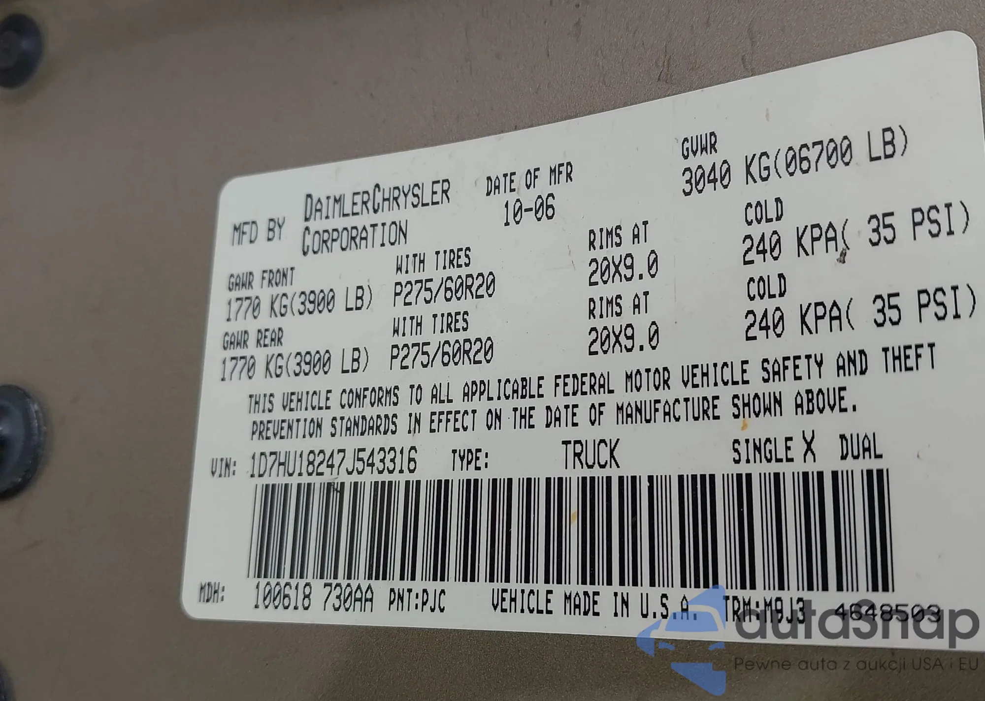 VIN: 1D7HU18247J543316