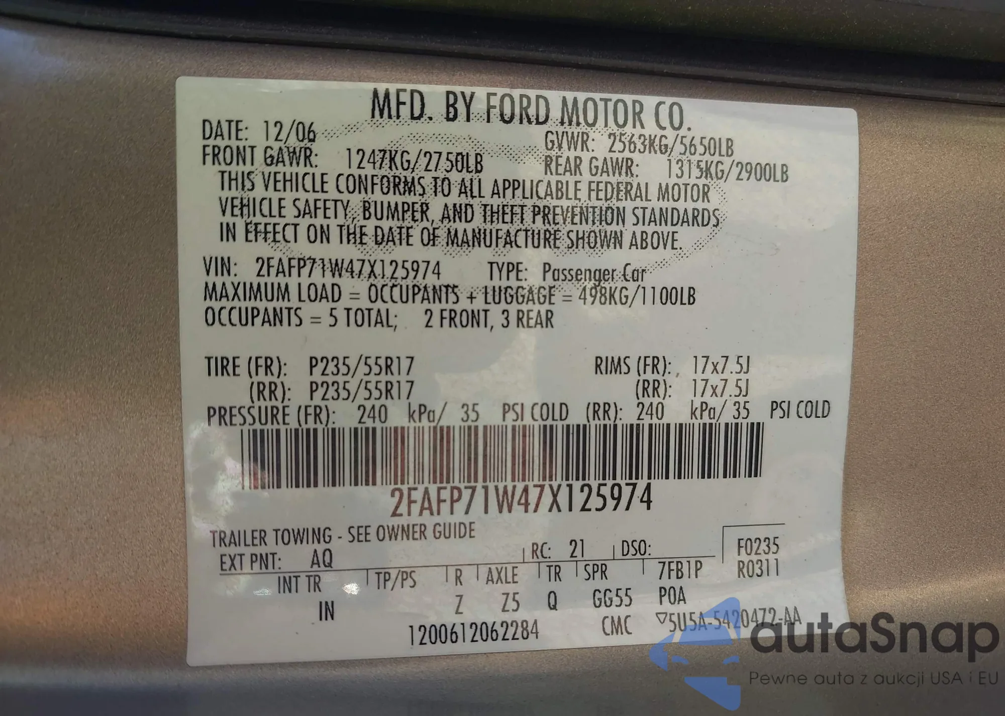 VIN: 2FAFP71W47X125974