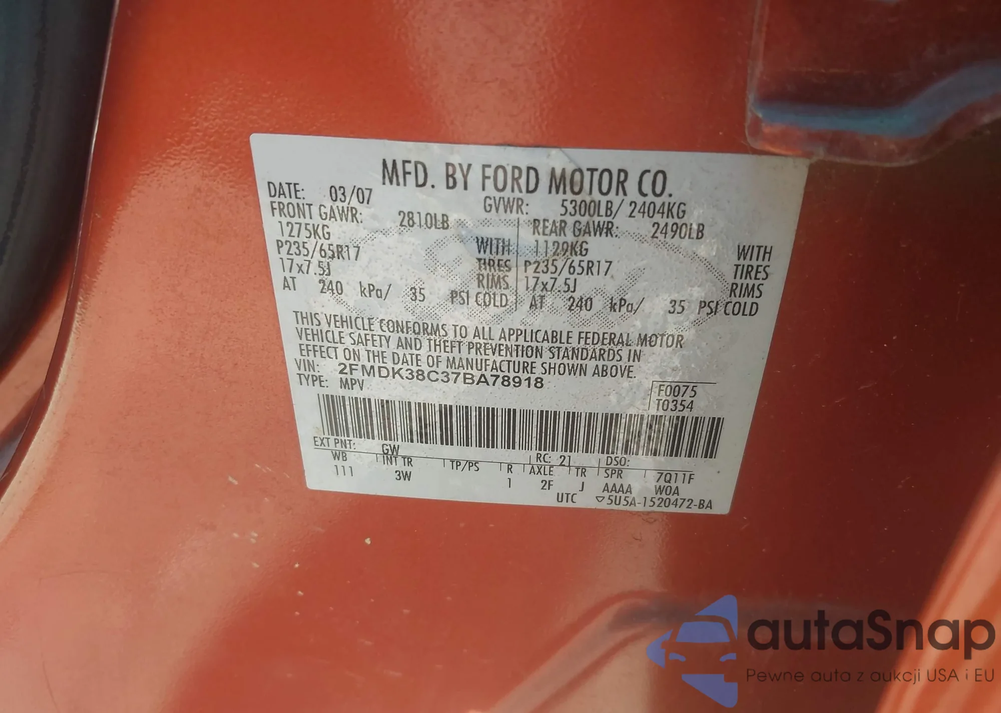 VIN: 2FMDK38C37BA78918