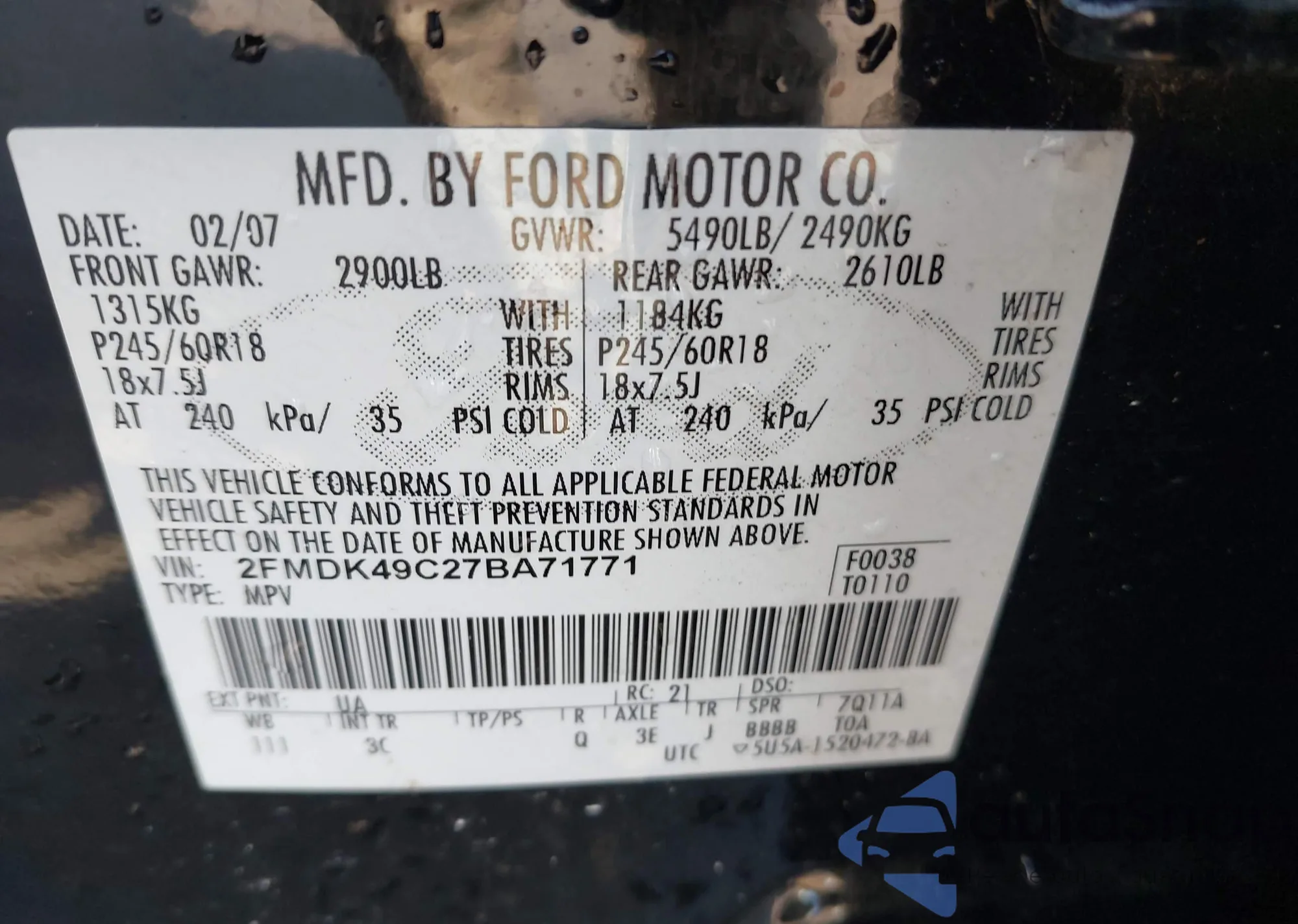 VIN: 2FMDK49C27BA71771