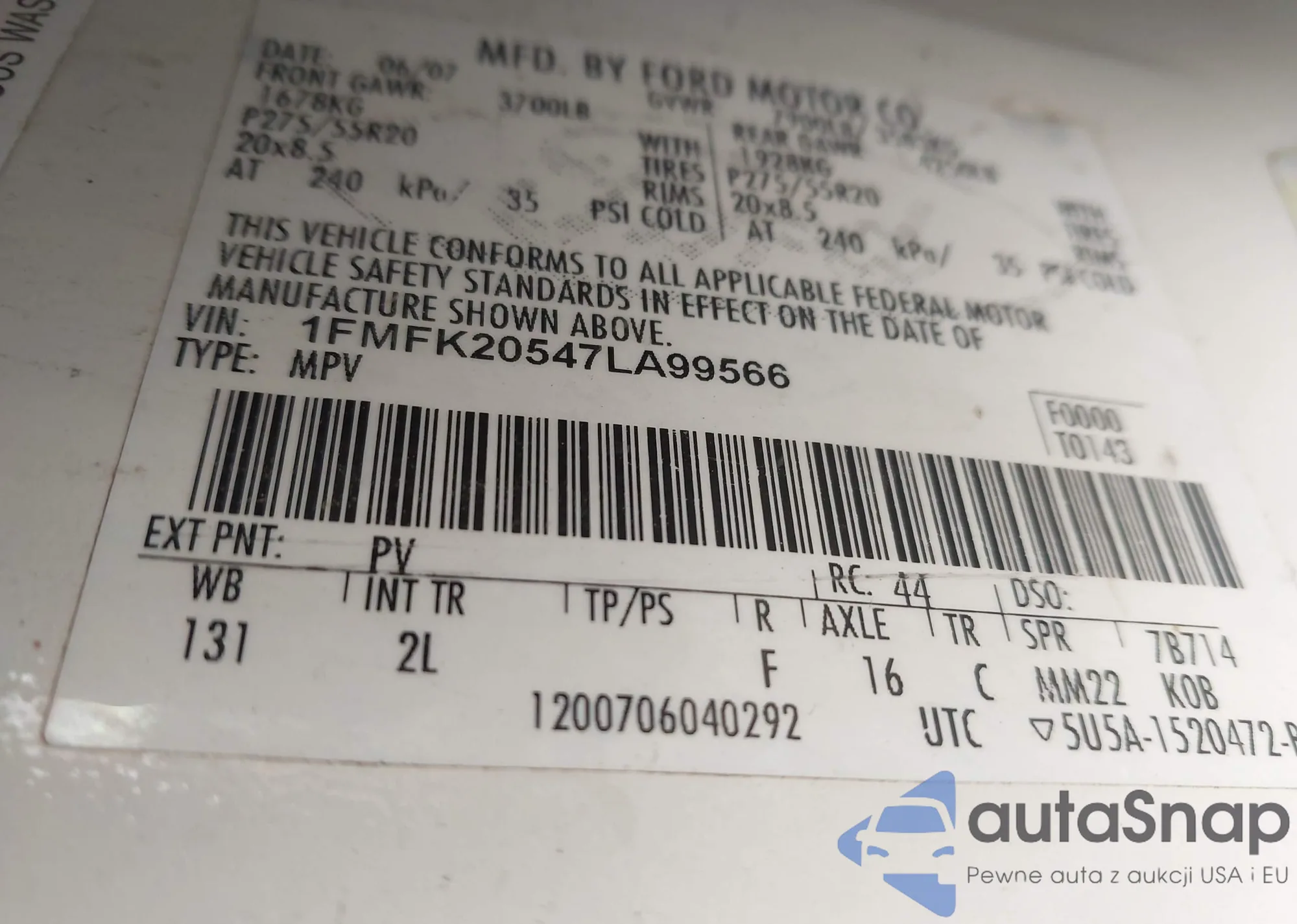 The car Ford Expedition 2007 (VIN 1FMFK20547LA99566) has not been auctioned before. The documents are clean, and the mileage matches or is below the market average. Sold by an insurance company – we recommend purchase. Delivery to the port will take approx. 6–8 weeks.