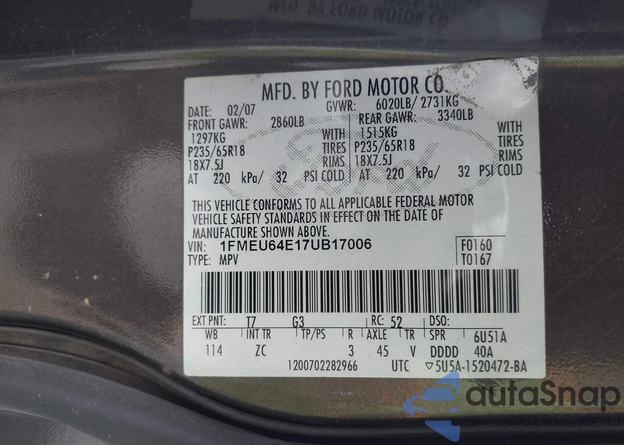 VIN: 1FMEU64E17UB17006