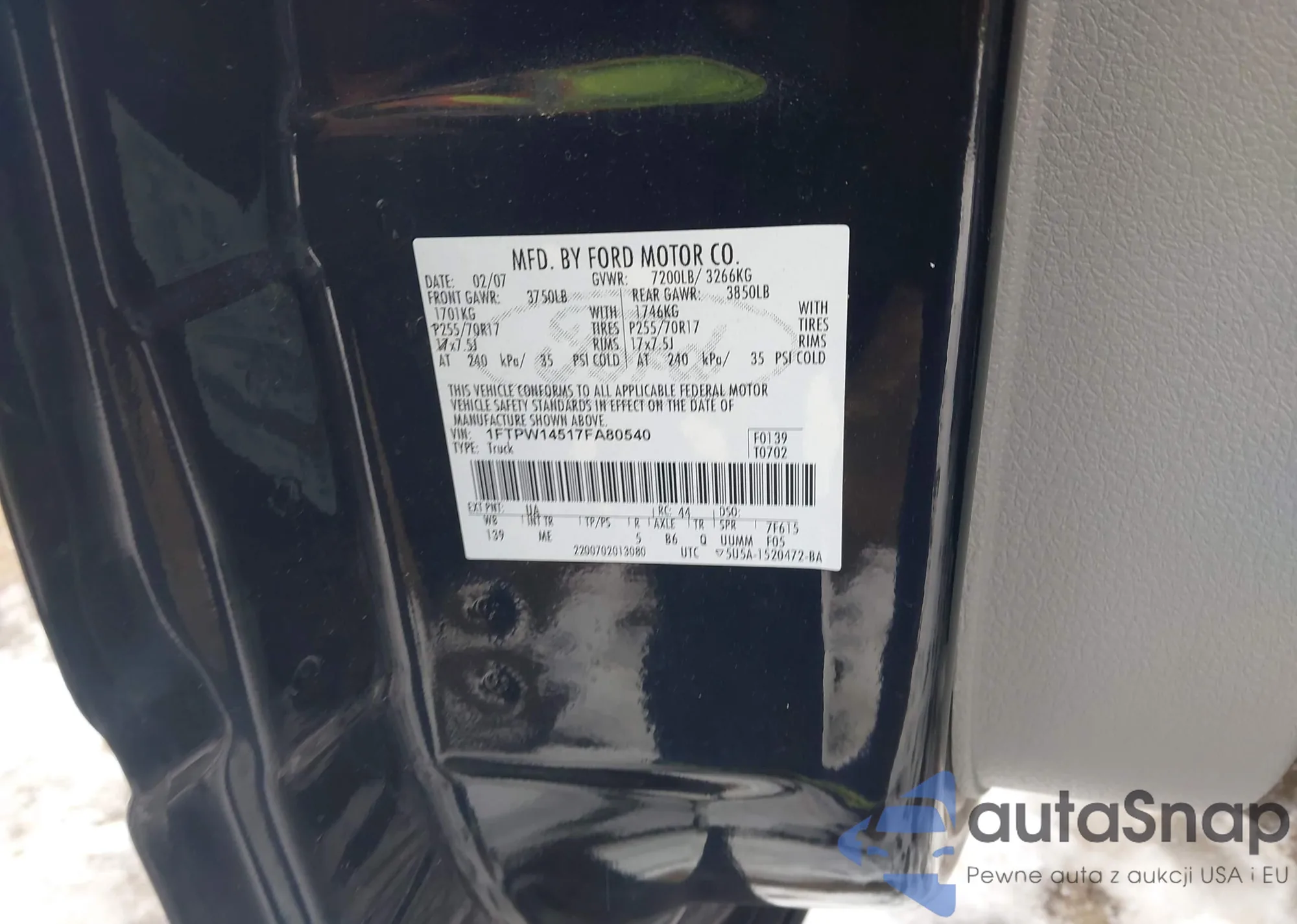 VIN: 1FTPW14517FA80540
