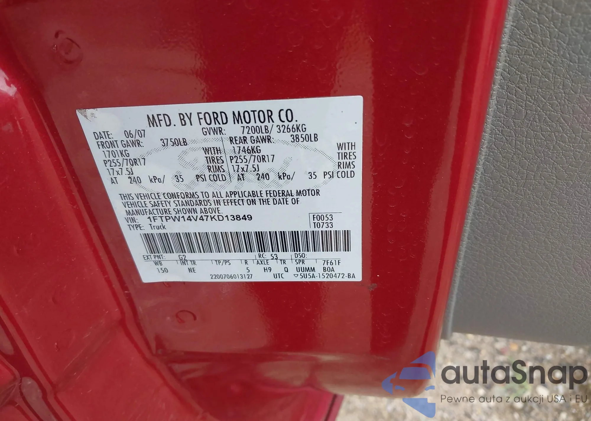 VIN: 1FTPW14V47KD13849