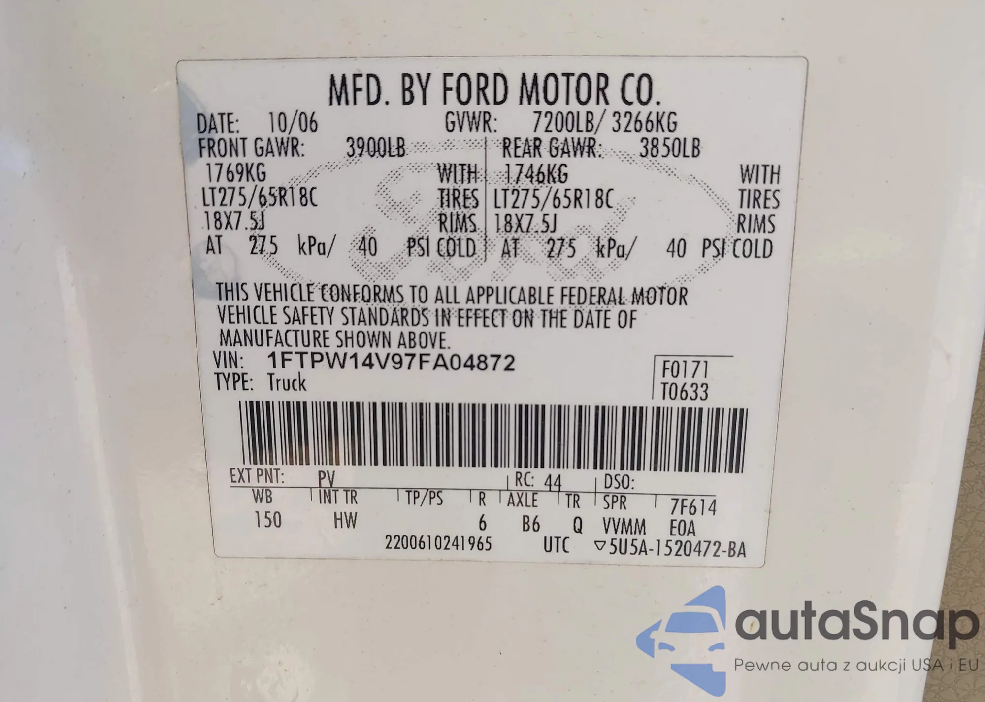 VIN: 1FTPW14V97FA04872