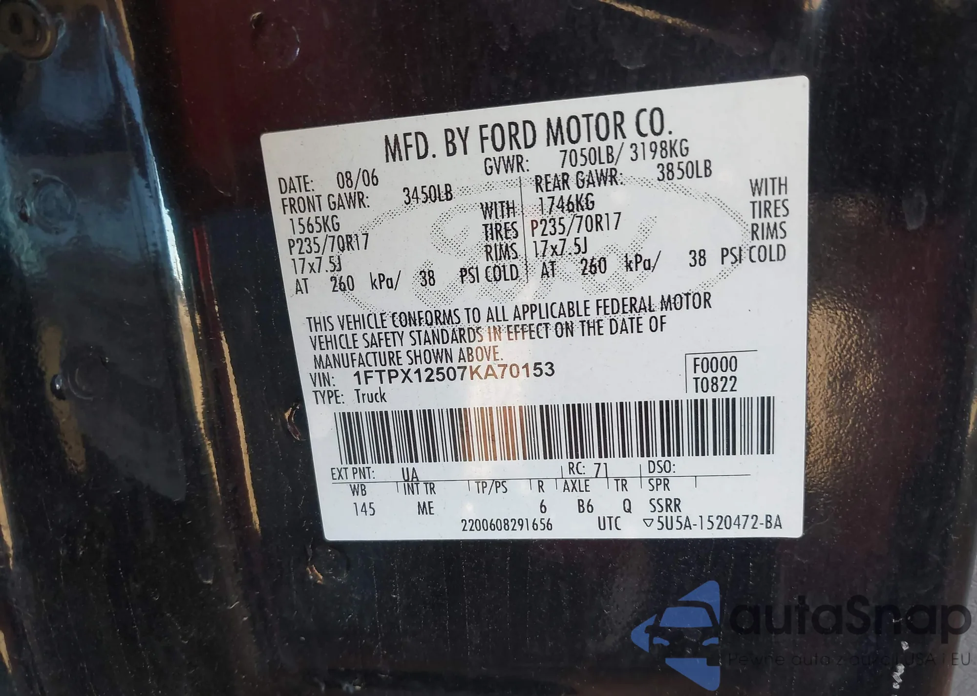 VIN: 1FTPX12507KA70153