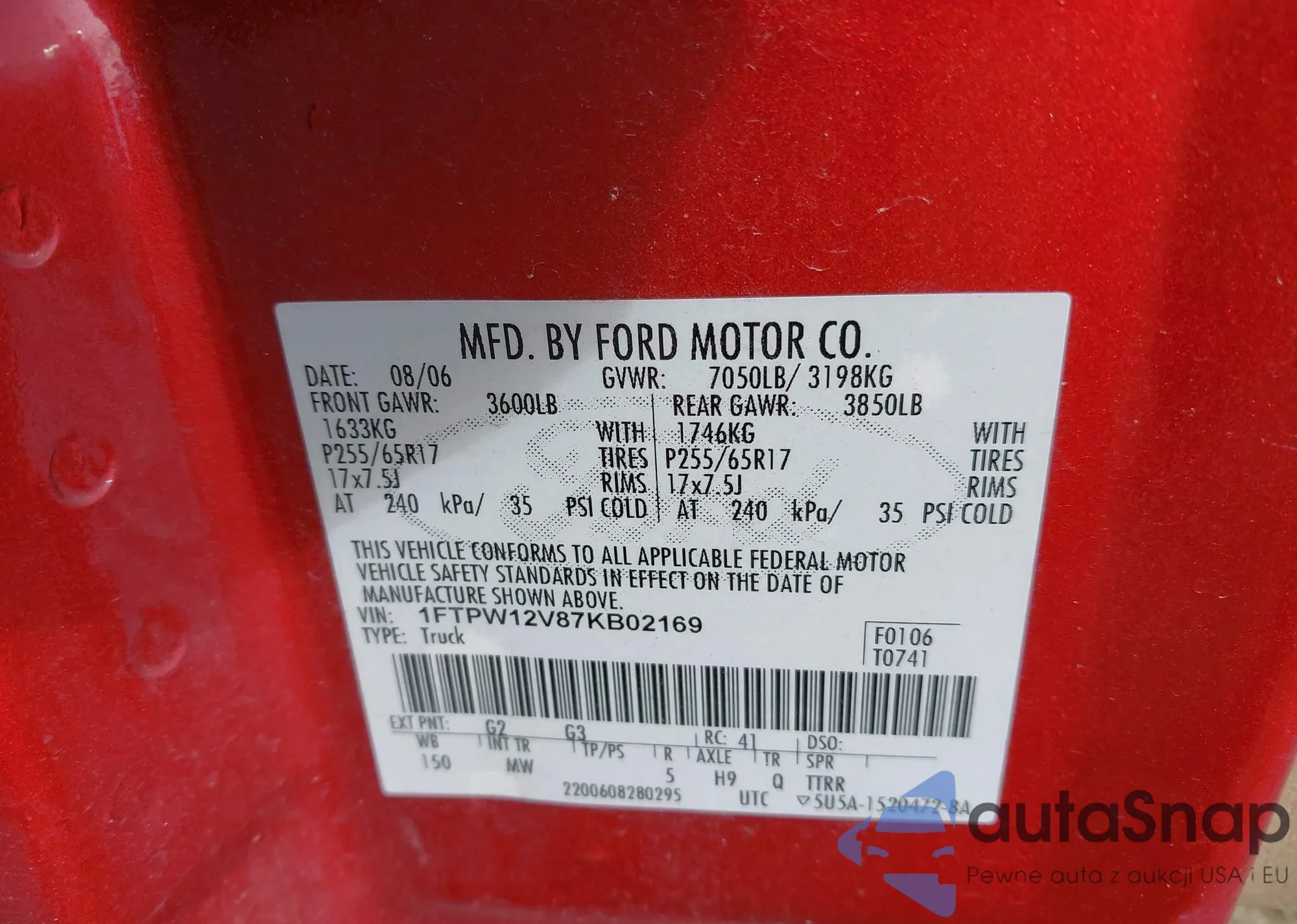 • VIN: 1FTPW12V87KB02169