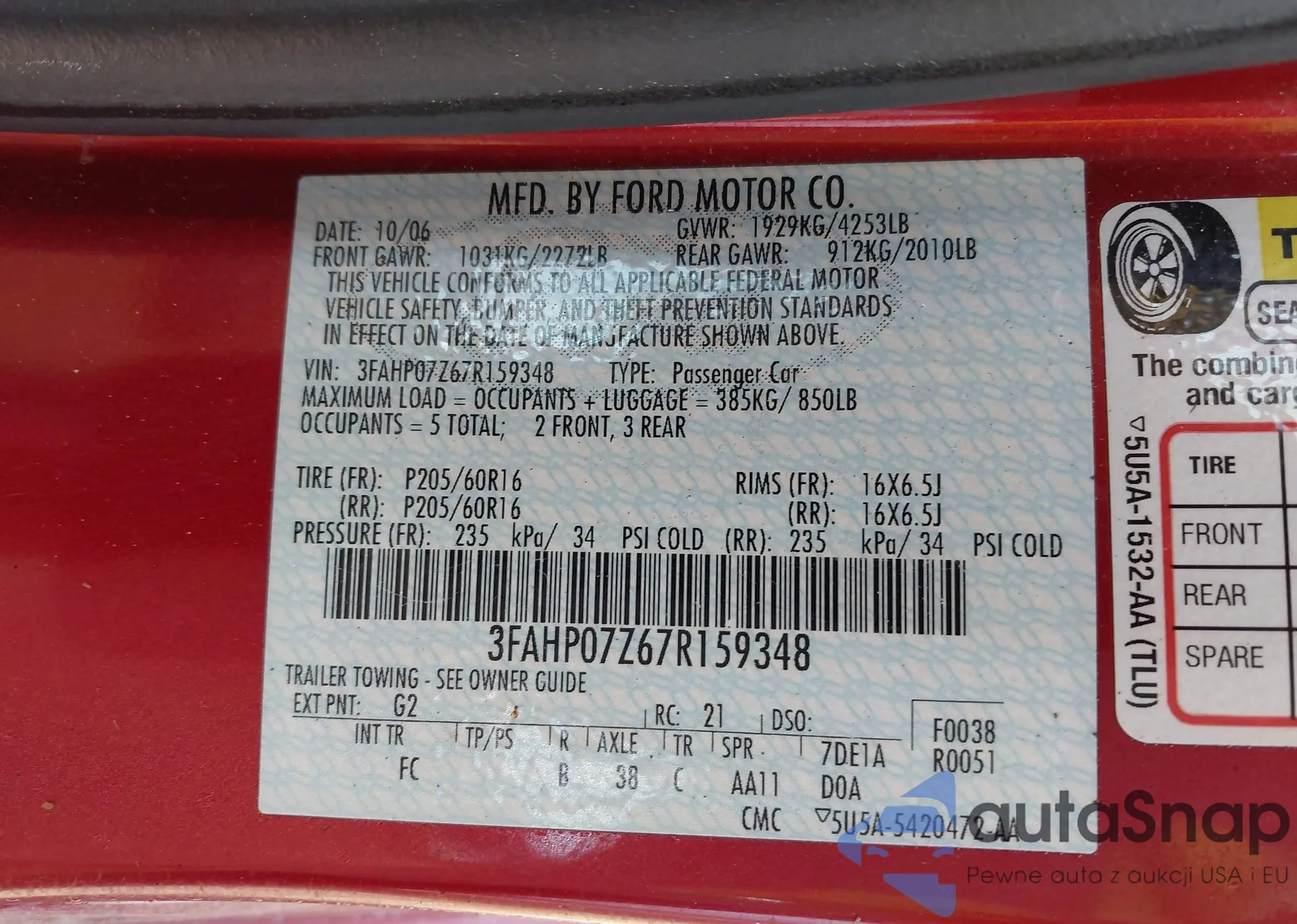 VIN: 3FAHP07Z67R159348