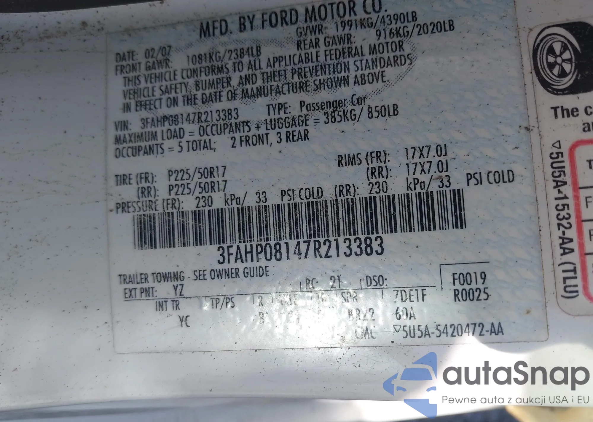 VIN: 3FAHP08147R213383