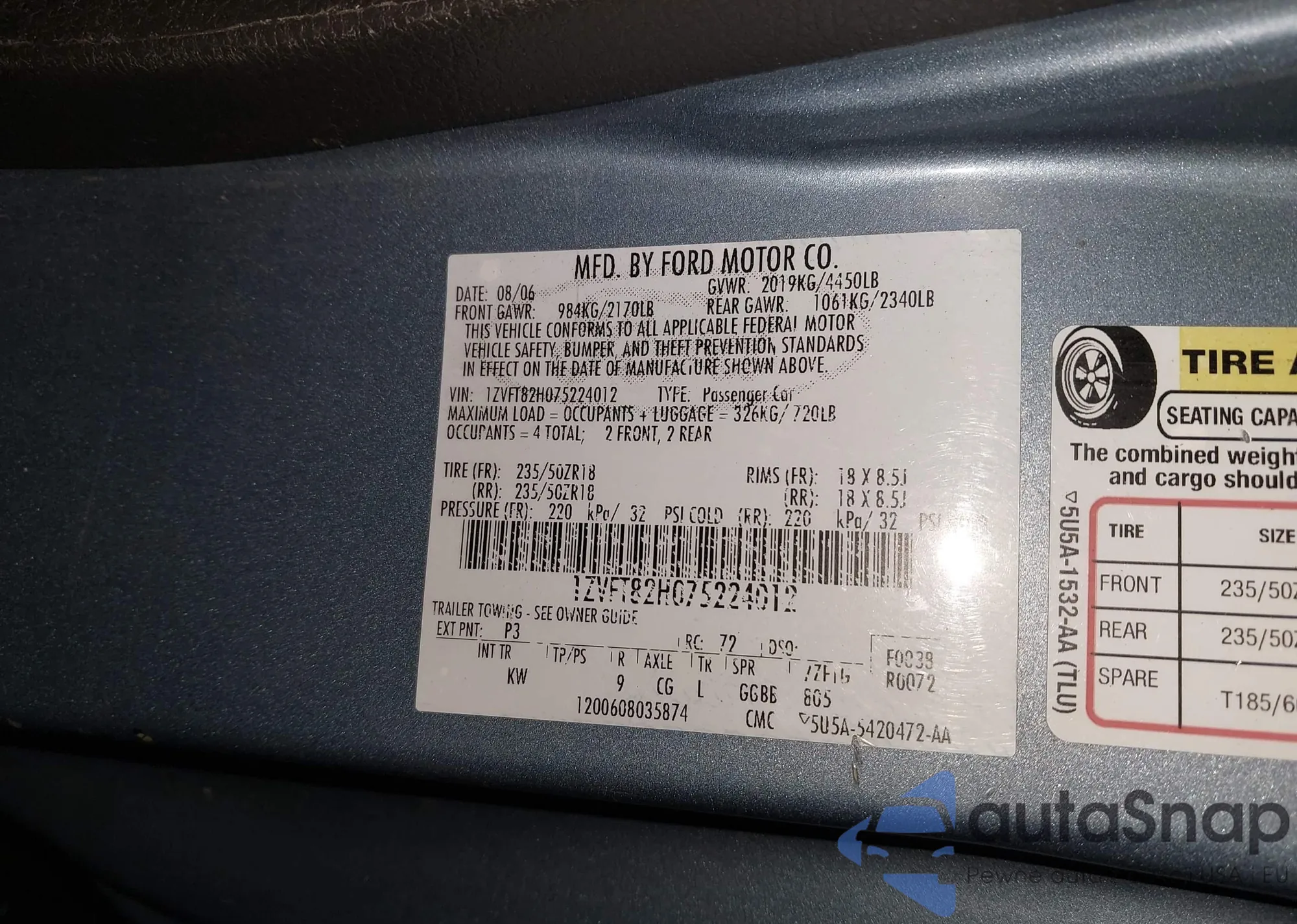 VIN: 1ZVFT82H075224012