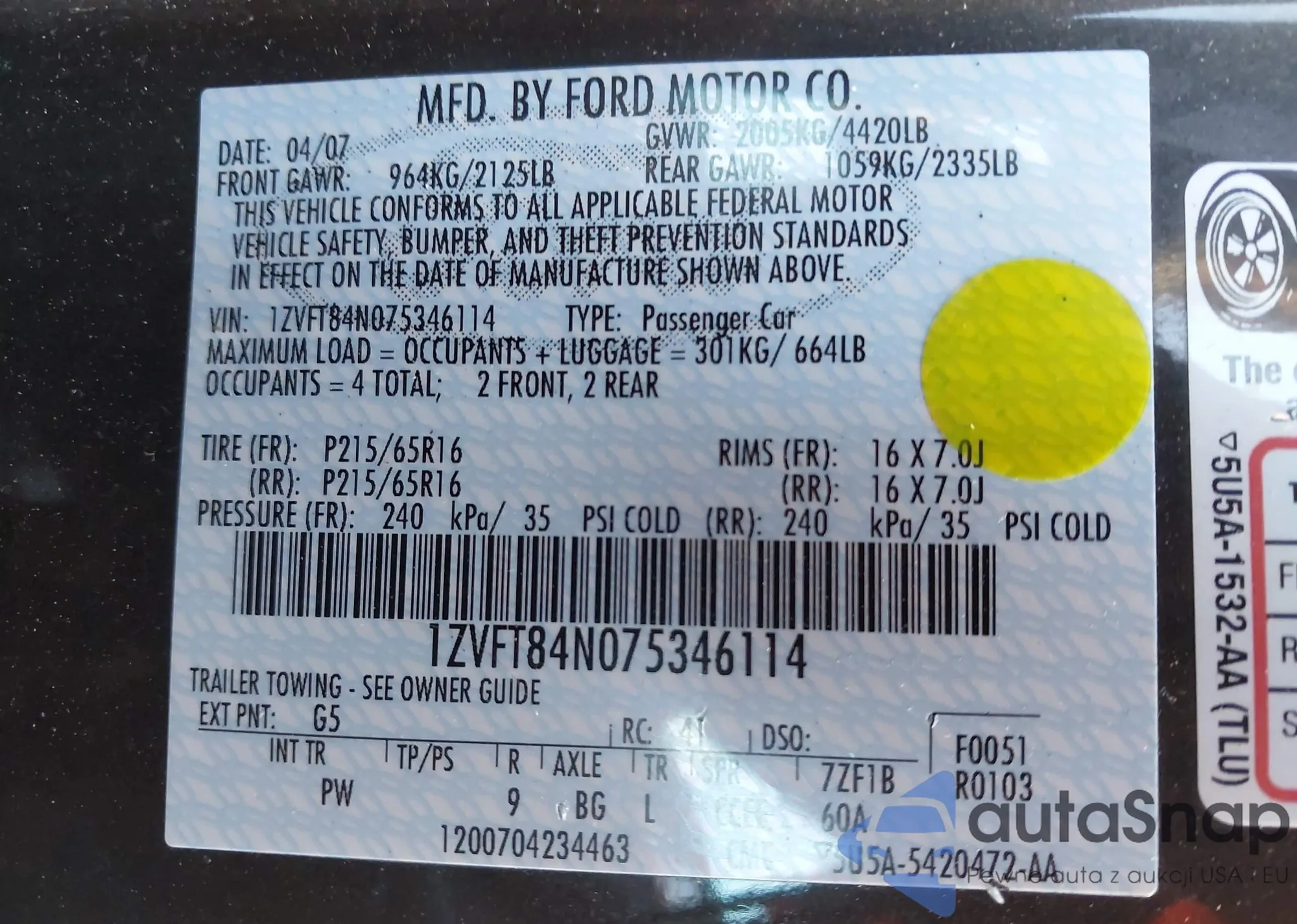 VIN: 1ZVFT84N075346114