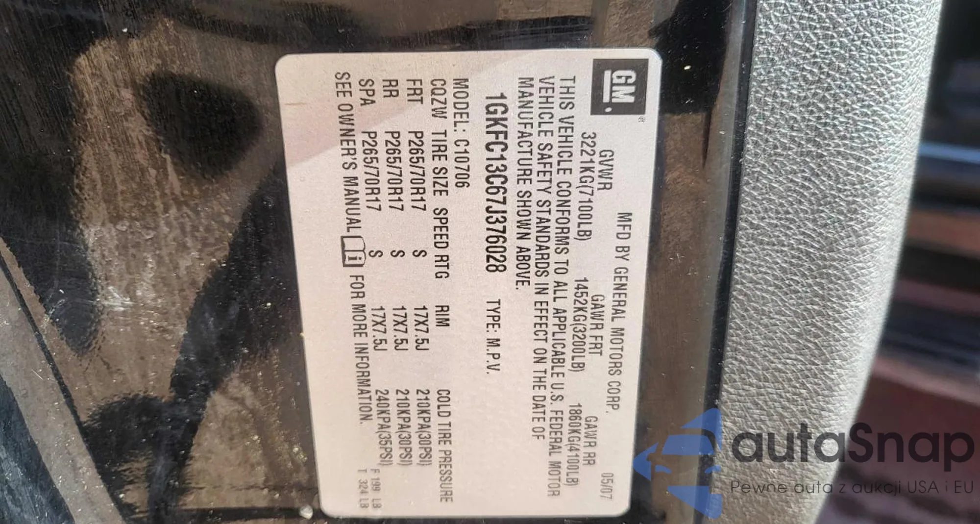 VIN: 1GKFC13C67J376028