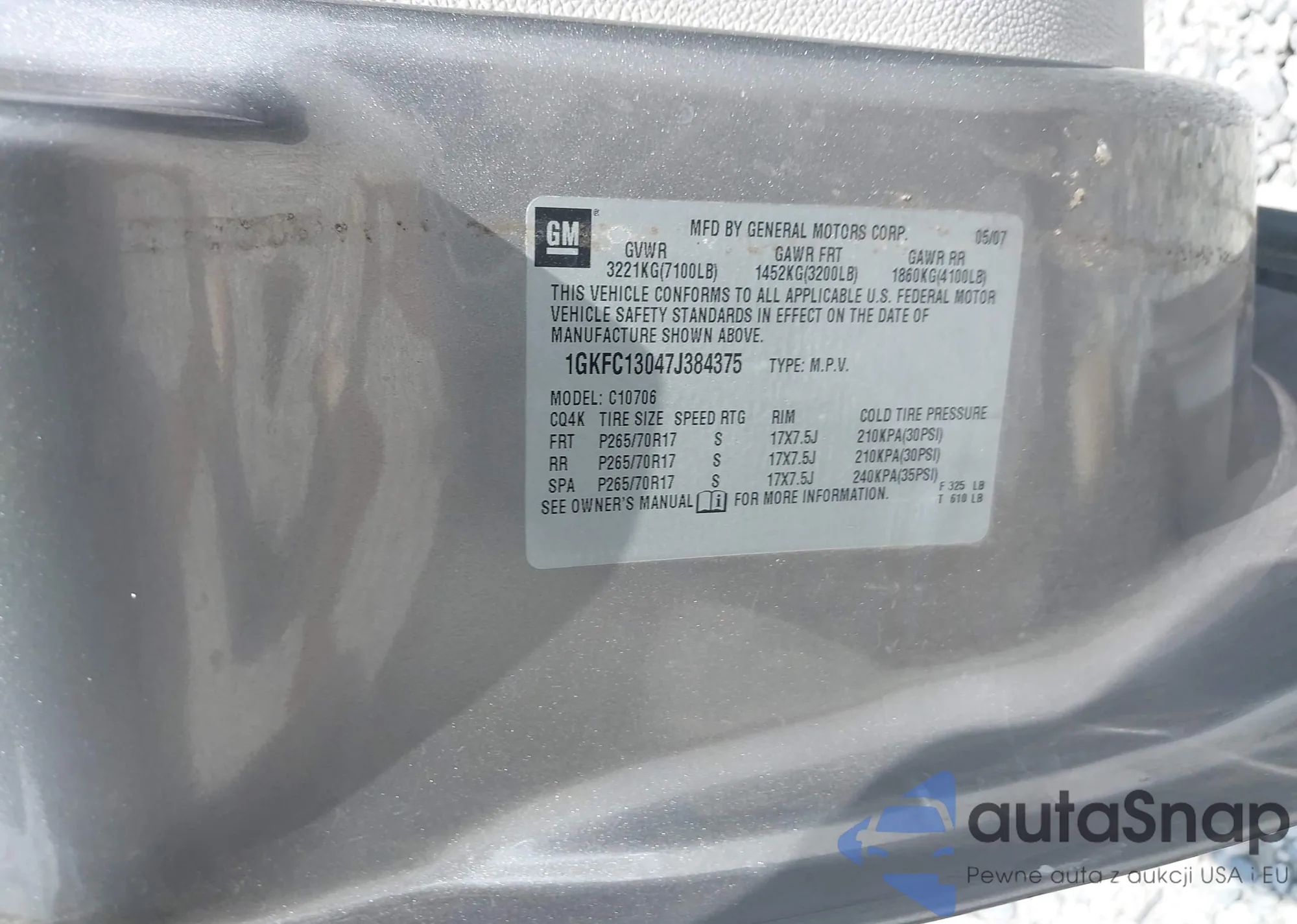 VIN: 1GKFC13047J384375