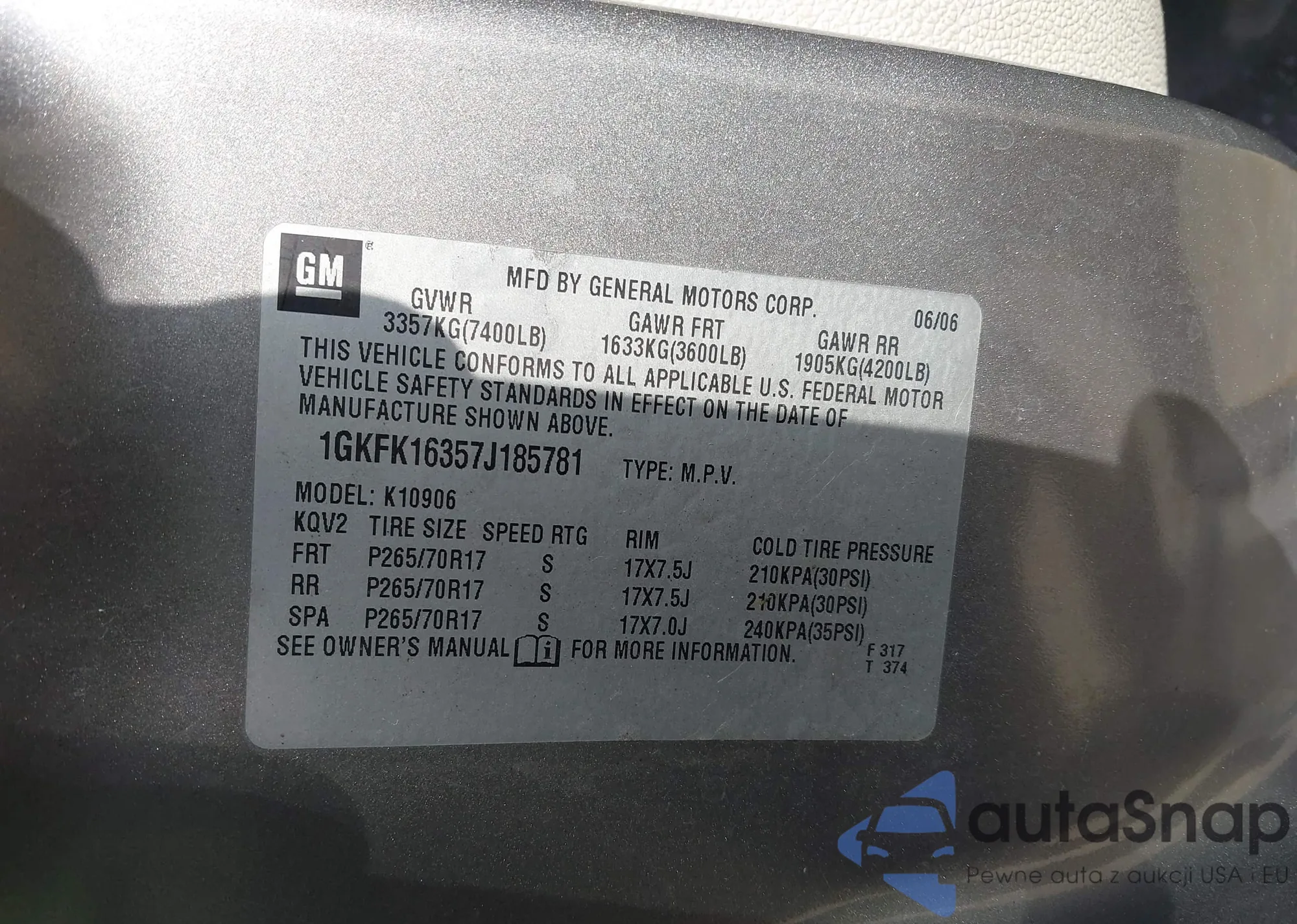 VIN: 1GKFK16357J185781