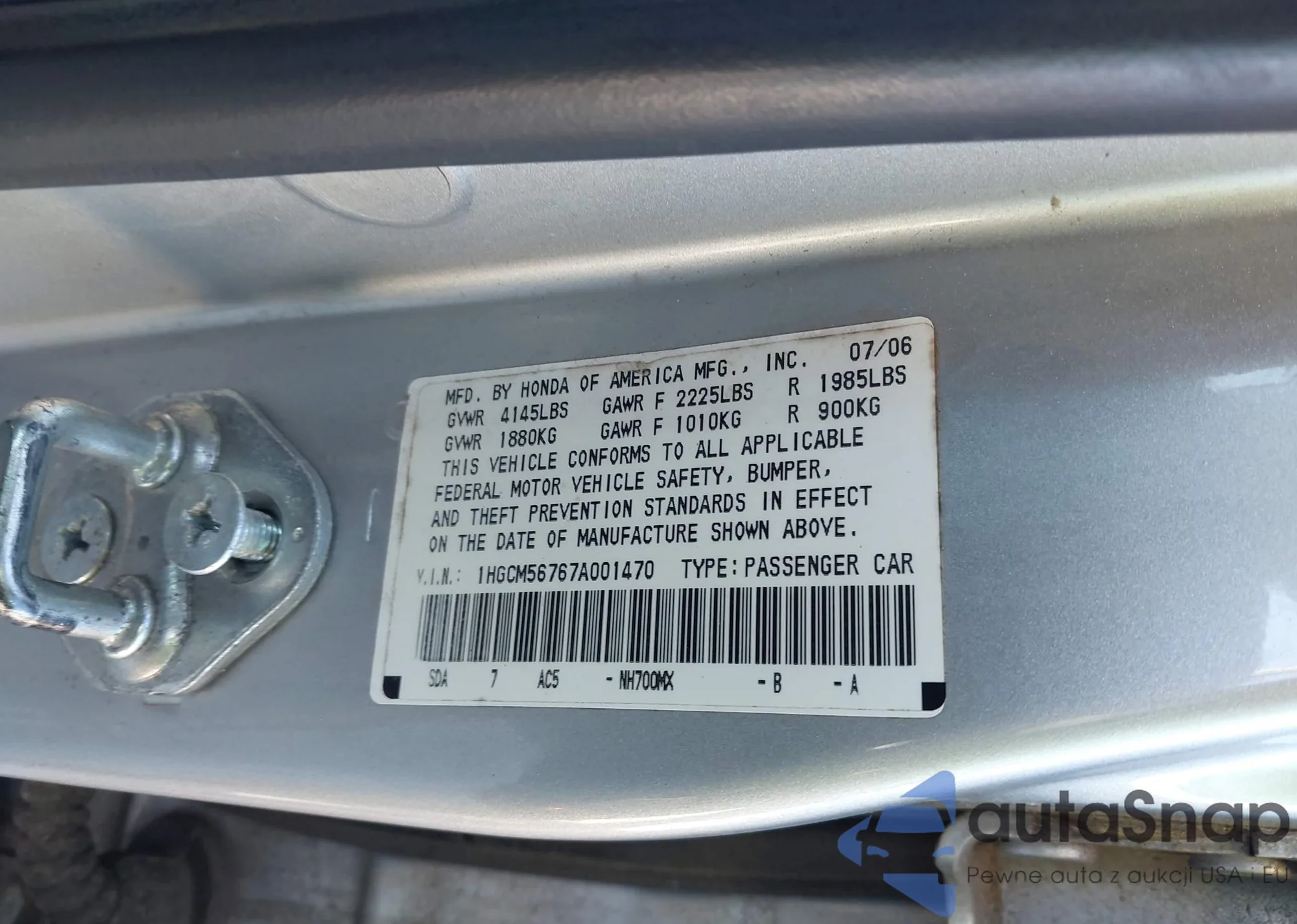 VIN: 1HGCM56767A001470