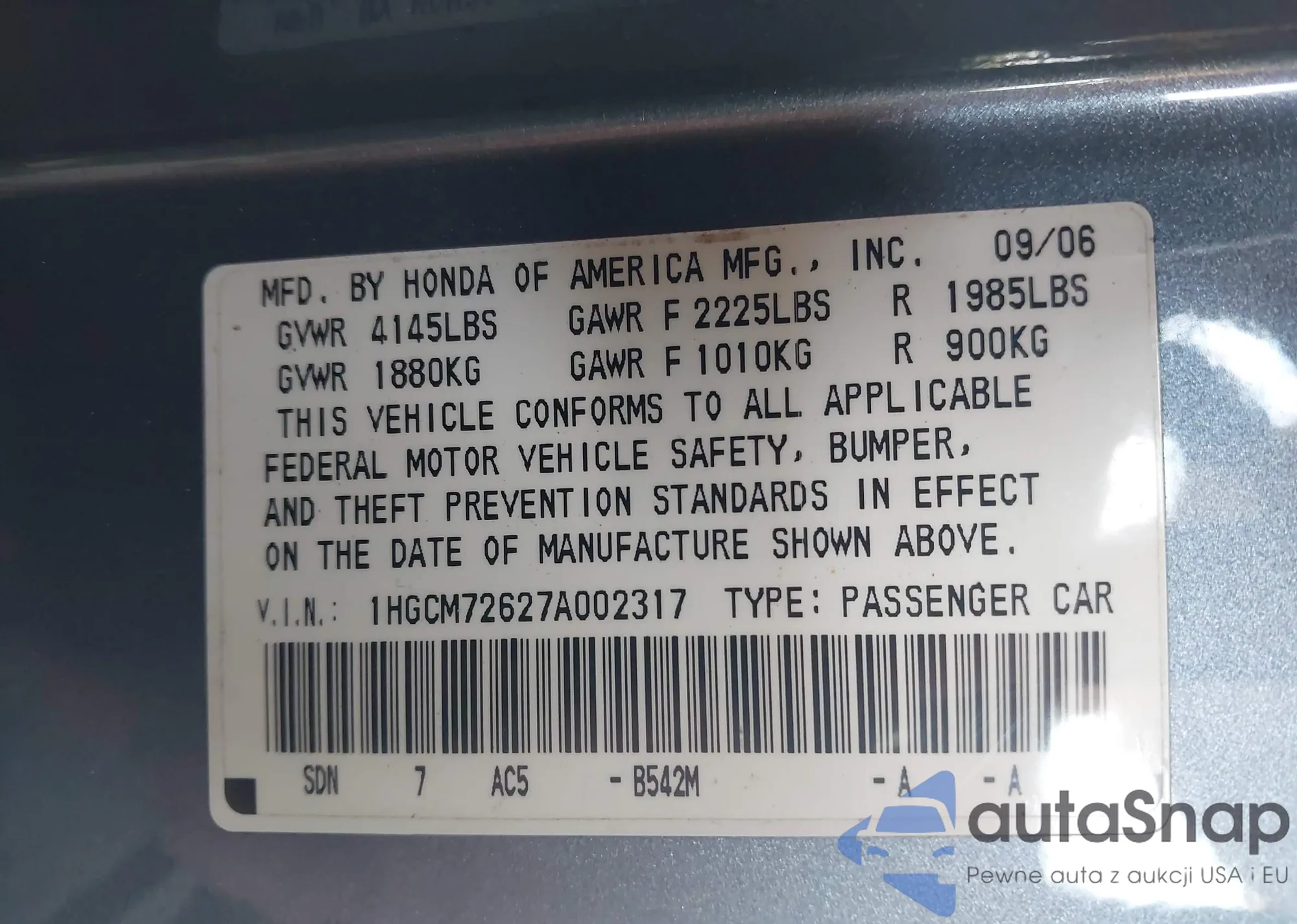 VIN: 1HGCM72627A002317