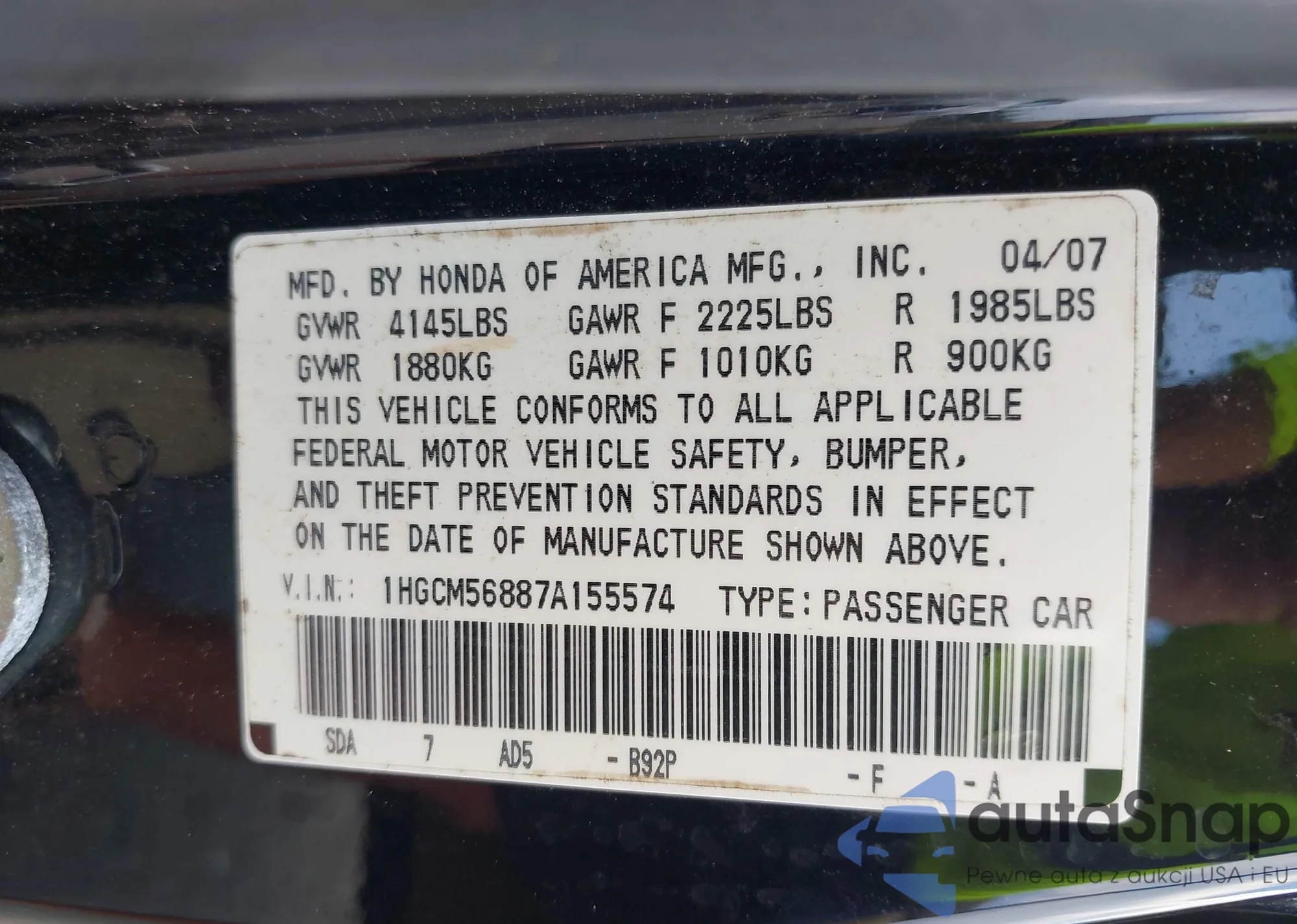 VIN: 1HGCM56887A155574