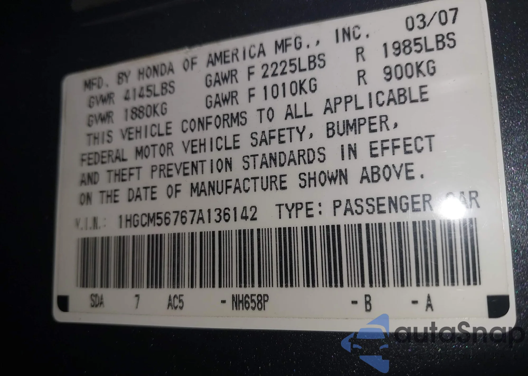 The car Honda Accord 2007 (VIN 1HGCM56767A136142) has not been auctioned before. The documents are clean, and the mileage matches or is below the market average. Sold by an insurance company – we recommend purchase. Delivery to the port will take approx. 6–8 weeks.