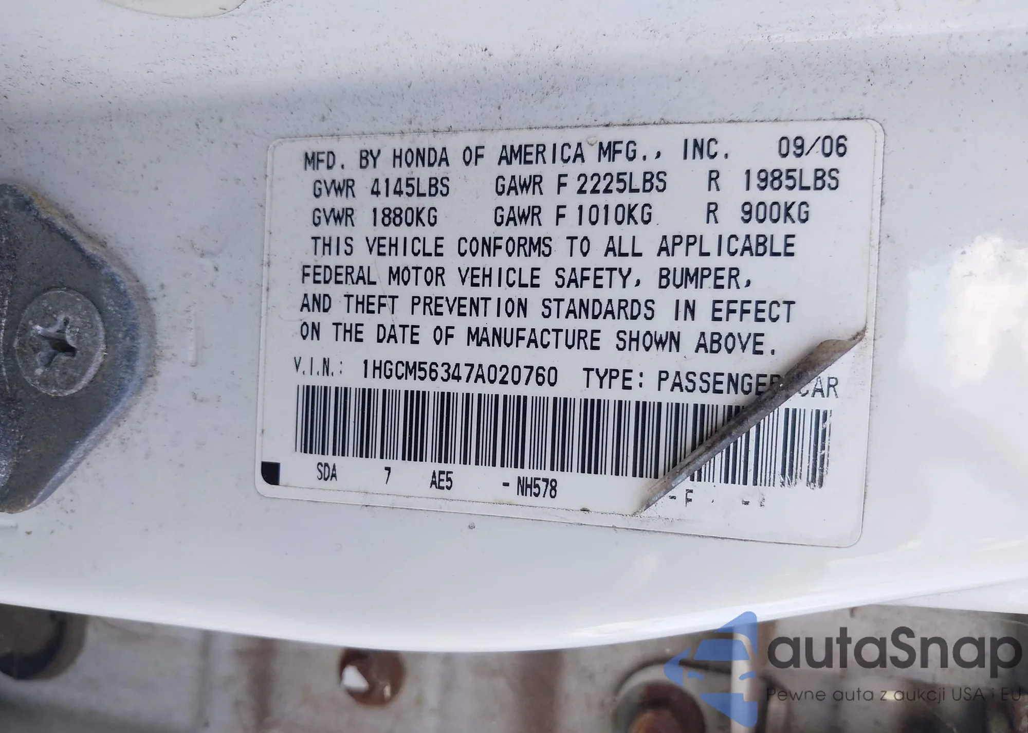 VIN: 1HGCM56347A020760