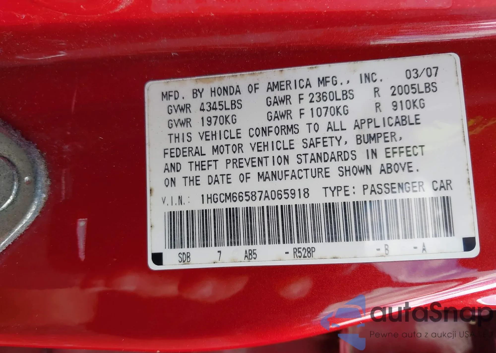VIN: 1HGCM66587A065918