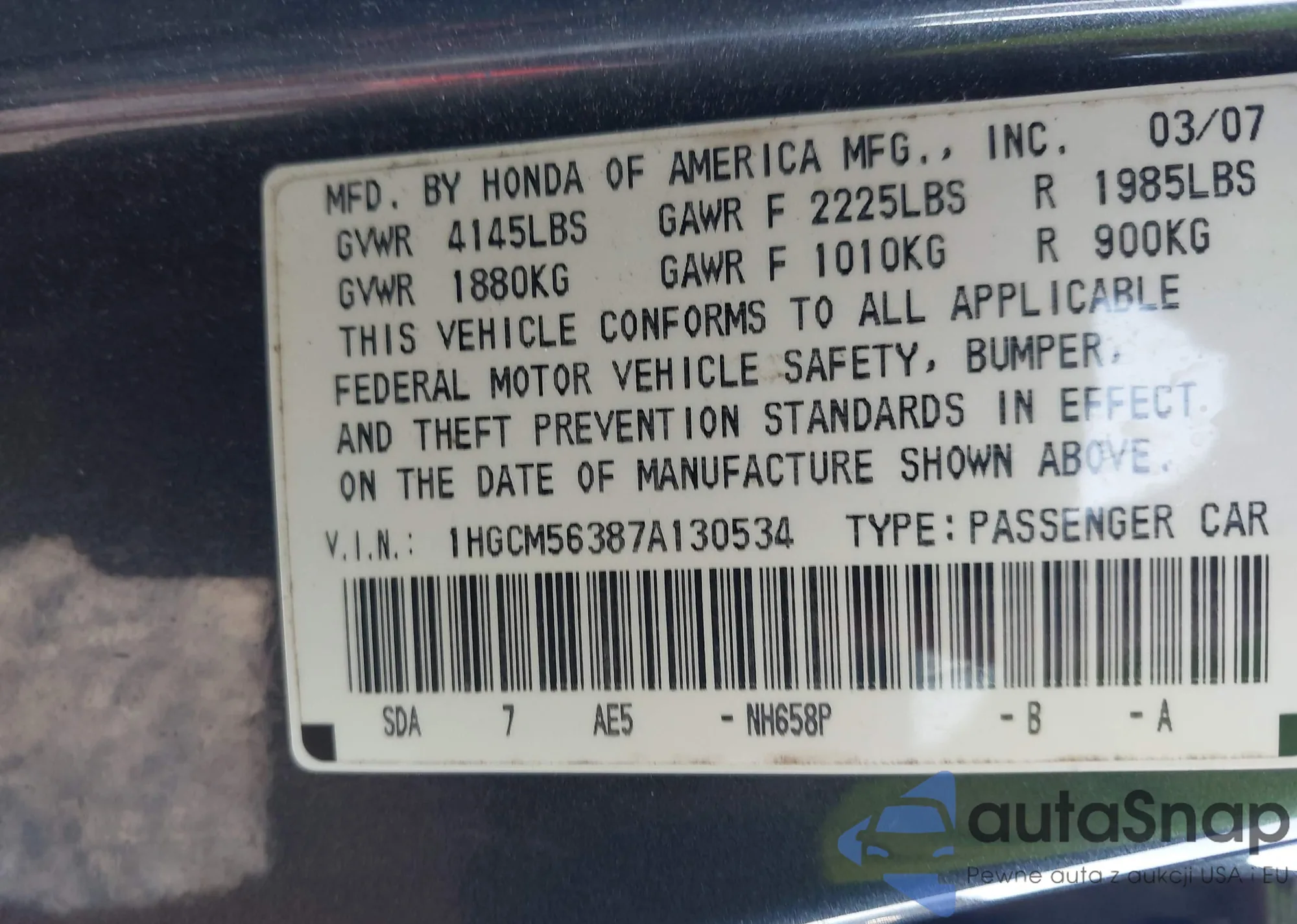 VIN: 1HGCM56387A130534