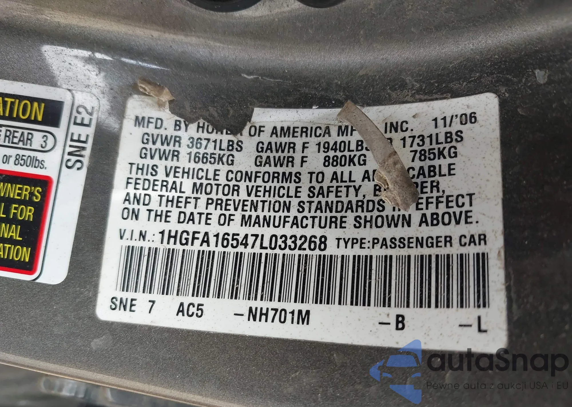 VIN: 1HGFA16547L033268