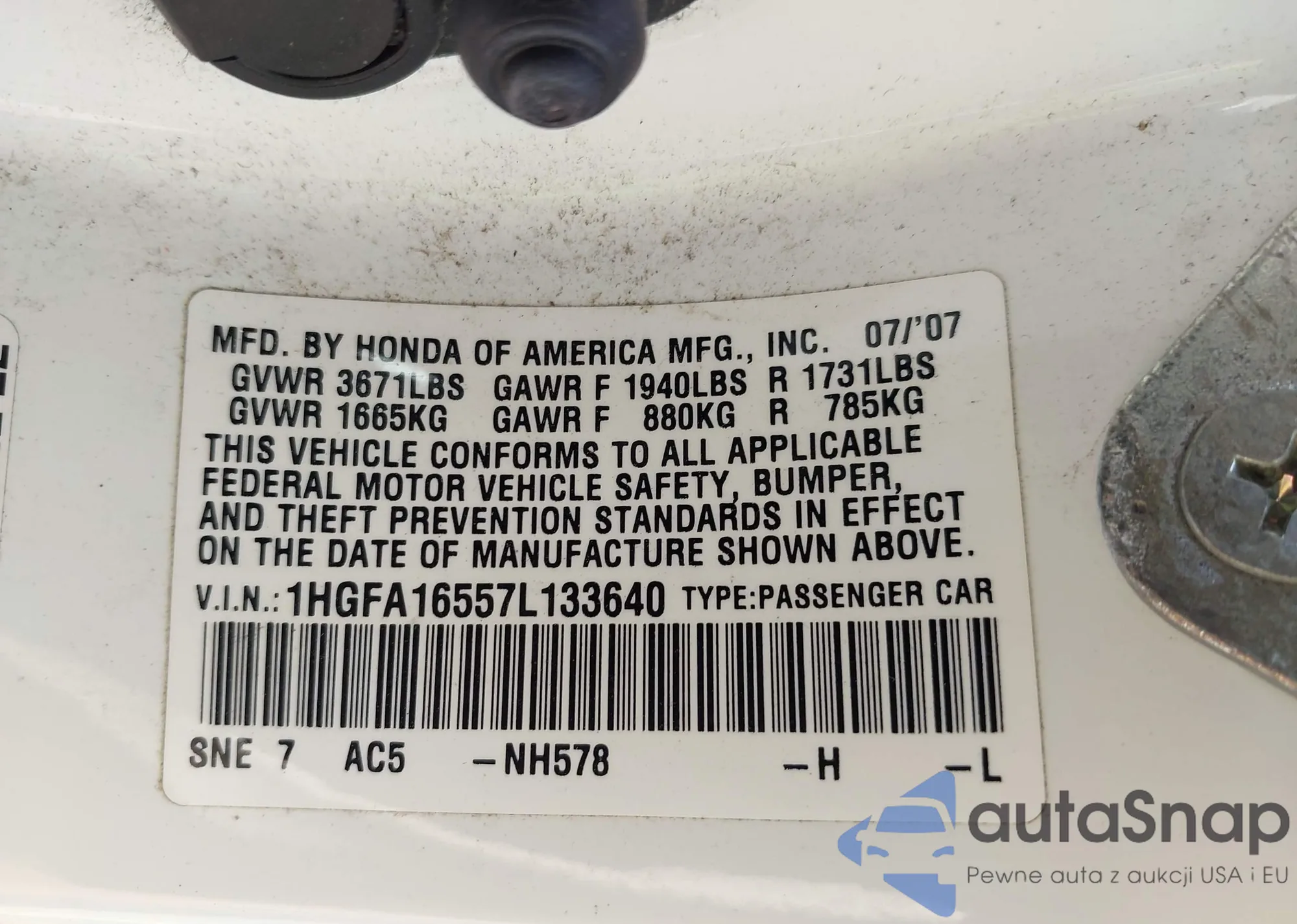 VIN: 1HGFA16557L133640