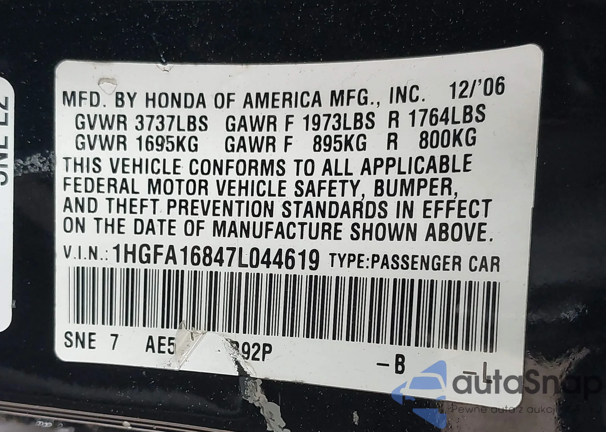 VIN: 1HGFA16847L044619